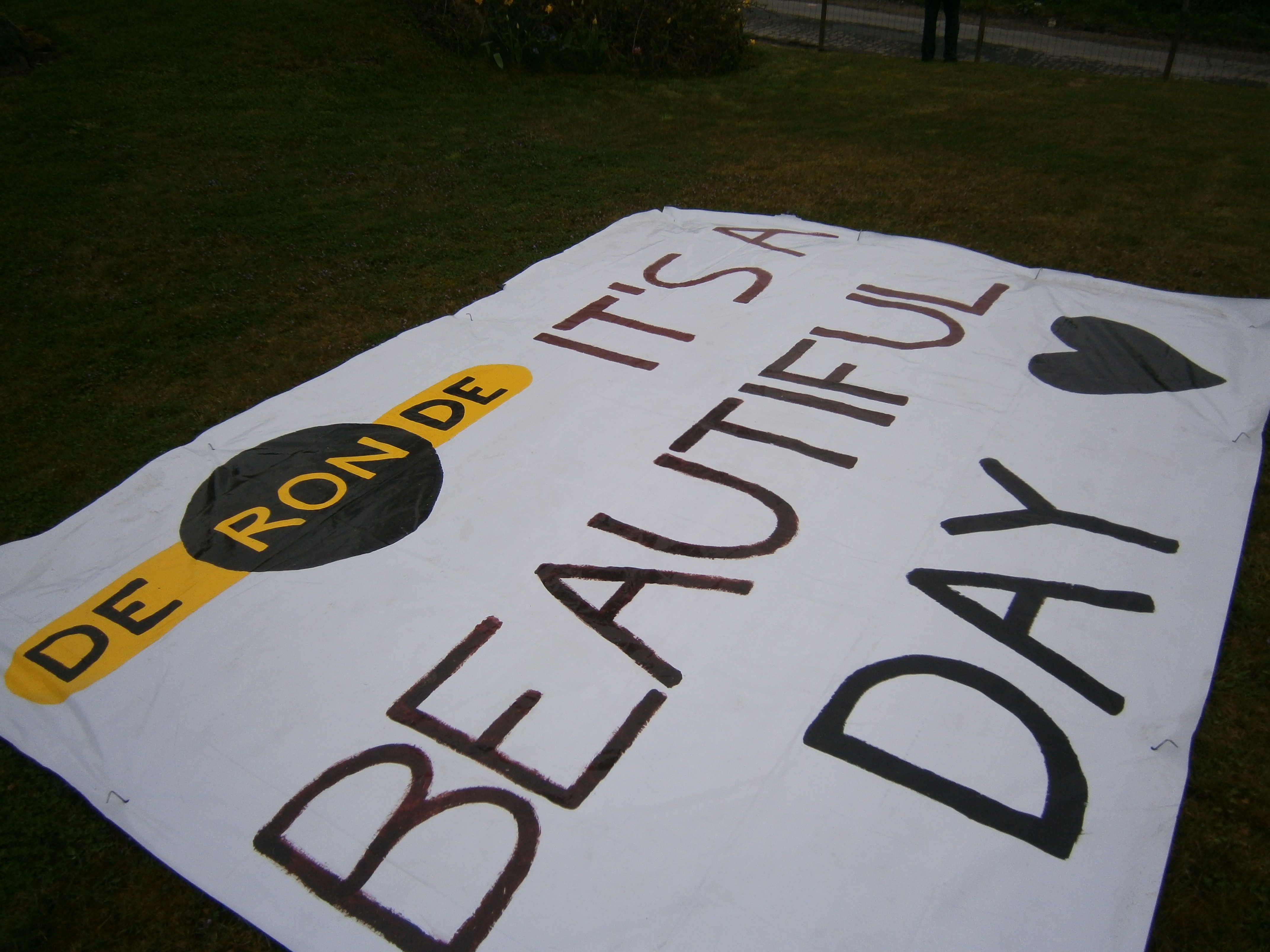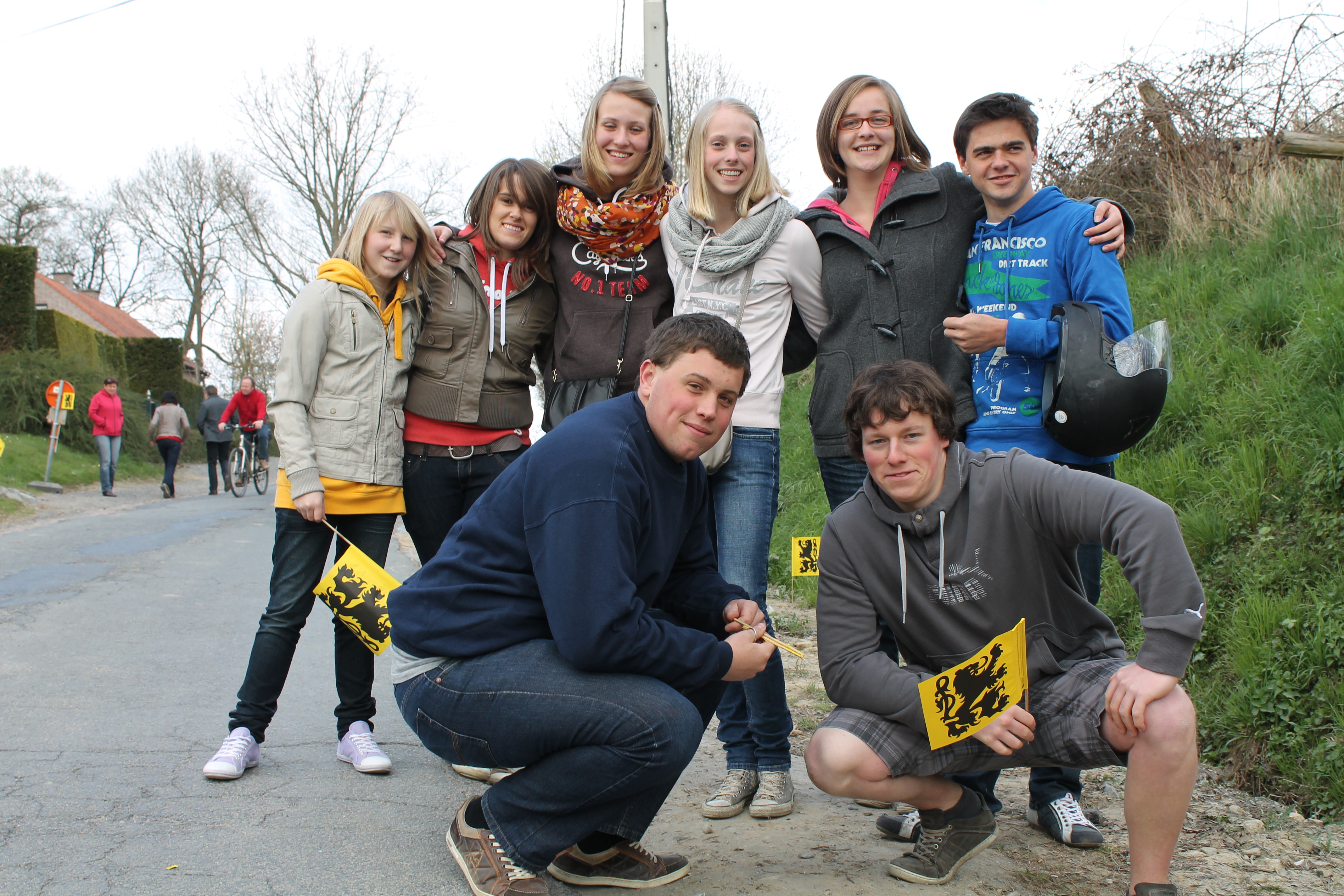 Terug op hetzelfde plaatsje op de Eikenberg, onze favoriete berg toch wel. Omdat m’n foto’s vorig jaar niet zo gelukt waren, besloot ik nu enkel voor en na de koers foto’s te nemen. Foto’s van vrienden, familie, van de sfeer… én van ons spandoek. Ja, we hadden dit jaar een spandoek gemaakt, met het opschrift IT’S A BEAUTIFUL DAY, het favoriete lied van Fabian Cancellara en uiteraard sowieso dé passende quote voor deze hoogdag. De grote foto mocht ik niet laten ontbreken: een fotografe van Het Nieuwsblad kon Stefanie en mij, hevig supporterend, in beeld brengen met niemand minder dan Flecha! De editie van 2011 werd gewonnen door Nick Nuyens, voor Sylvain Chavanel en Fabian Cancellara.