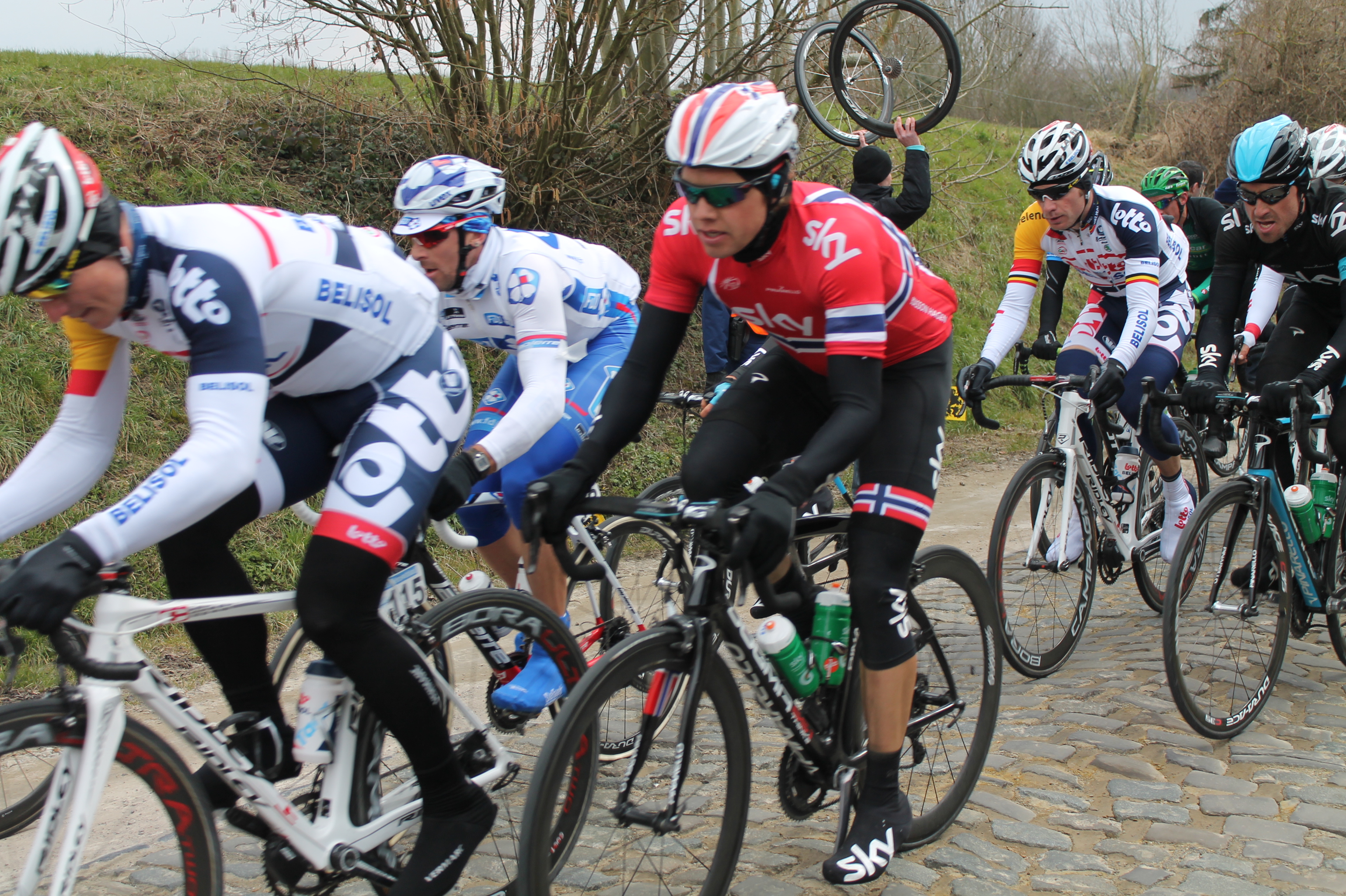 Twee jaar geleden eerst eens op de Eikenberg kijken, zoals nu al een gewoonte was geworden. Hier kon ik een foto nemen van Noorse kampioen tijdrijden Edvald Boasson Hagen (Sky) en achter hem Jürgen Roelandts (Lotto Belisol). Stefanie, mama en ik kregen er niet genoeg van dus nog naar de Steenbeekdries gaan kijken ook. Hier kon ik onder andere een foto nemen van de Brit Geraint Thomas (Sky). Fabian Cancellara won voor de tweede keer de Ronde van Vlaanderen, opnieuw solo. Peter Sagan werd tweede en Jürgen Roelandts derde.
