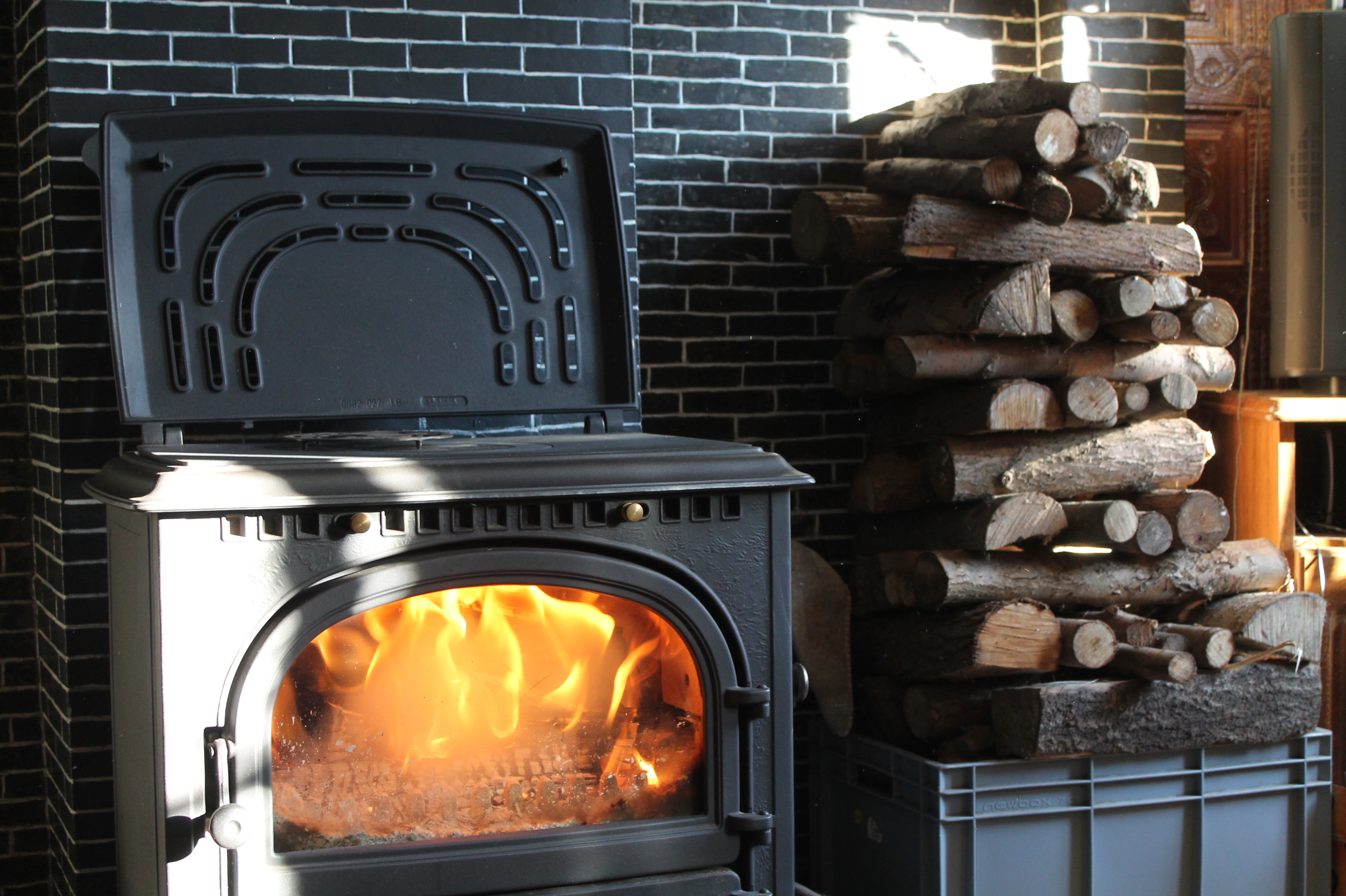 De houtblokken die te groot zijn, moeten nog worden gekloven. We hebben thuis twee kliefmachines: een verticale en een horizontale. Het gekloven hout wordt dan gestapeld, afgewisseld of door elkaar met de ronde of ongekloven houtblokken. Met onze houtgekke familie doen we dit tegelijkertijd: een paar klieven de grote houtblokken, anderen voeren het gekloven en ongekloven hout aan naar het houtkot en nog anderen stapelen de houtblokken. Hier kan het hout drogen en wachten tot we hen een (paar) winter(s) later terug komen halen. Dan beleven we er met de familie nog eens plezier en warmte aan.