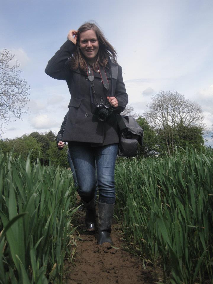 Op 8 mei 2012 werd er een leuke foto van me genomen, een foto die me toont met twee van de belangrijkste “gadgets” in m’n leven: m’n kodak en m’n laarzen! Ikzelf nam iets verderop een mooie foto van de eindeloze groene velden en de lichtblauwe wolken. Het was een prachtig weertje die dag, al hebben we ook de typische regen gehad. Maar dat hebben we niet aan ons hart laten komen.
