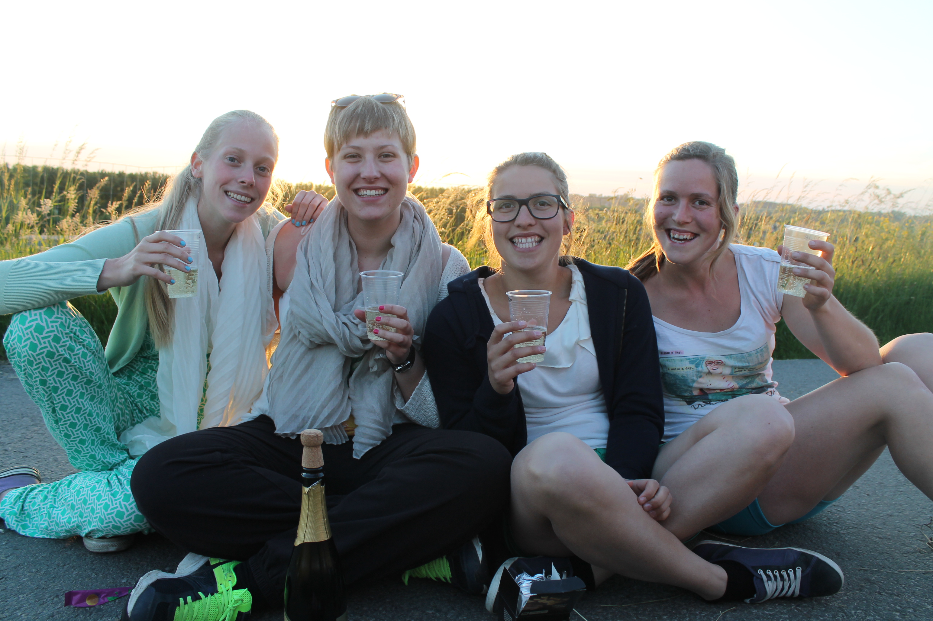 De flashback van vandaag gaat niet zo ver terug: afgelopen 6 juni. Het was m’n nicht Eline haar verjaardag. Midden in de examens kan er niet stevig gevierd worden maar dat hoeft ook niet altijd. Wij kunnen genieten van kleine dingen… Zoals die avond van een korte wandeling met een stop op een prachtige plaats in Schorisse: de Heidestraat. We genoten er van een glaasje cava, nootjes, M&M’s en een heel indrukwekkende zonsondergang. Heel wat mooie foto’s ter herinnering. Jullie krijgen er een van ons vier te zien: Jelke, Eline, Stefanie en ik.