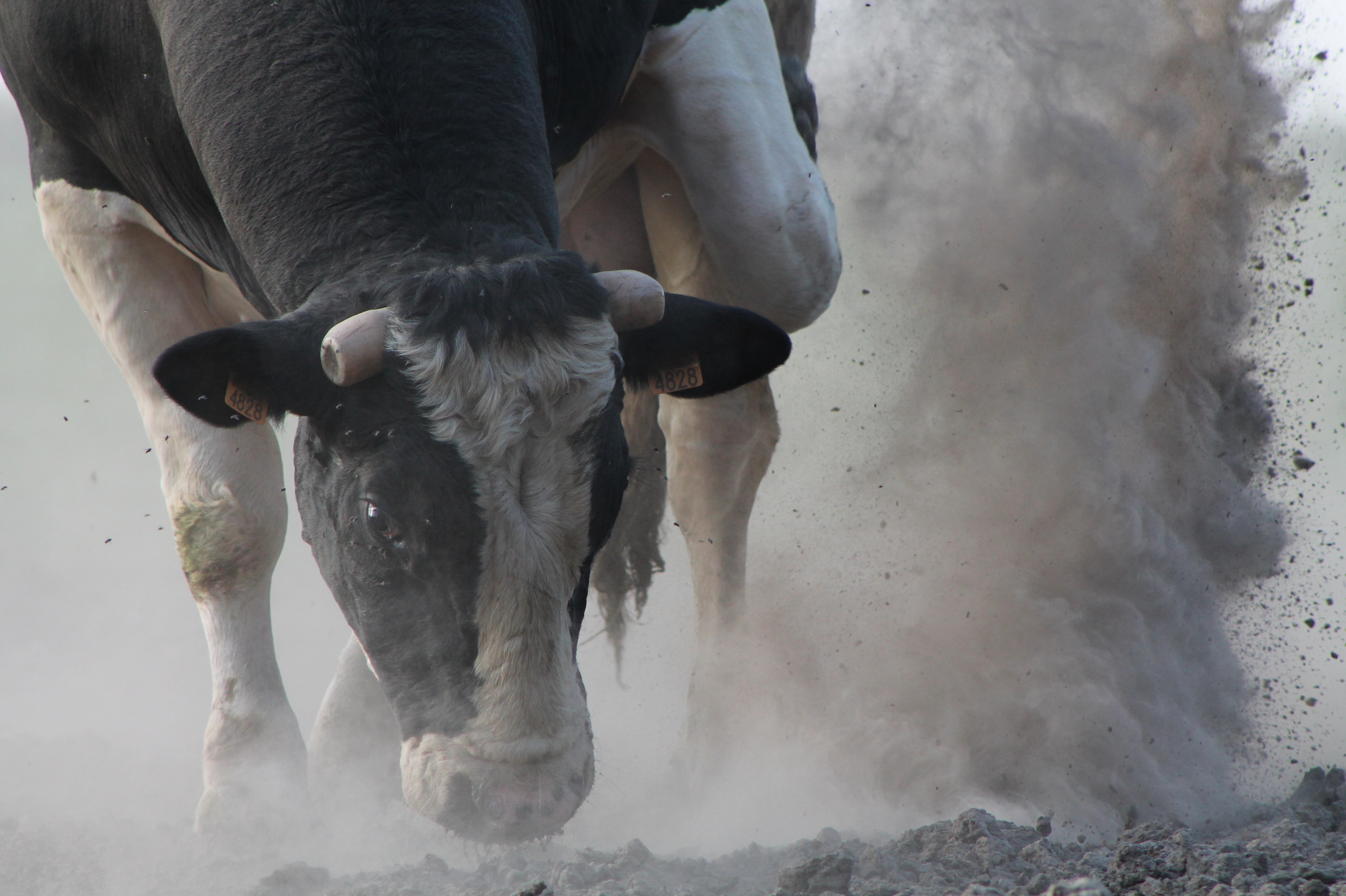 Vandaag op Throwback Thursday wil ik jullie één van m’n beste foto’s tonen die ik ooit heb genomen. Hij werd genomen op 23 augustus 2012, op een warme, droge zomerdag. Onze melkkoeien gingen nog elke dag buiten op de weide achter ons hof en rond half 6 moesten zij terug op stal. Er liep ook een stier bij, genaamd Kamiel. De laatste weken was hij meer en meer baas geworden over de kudde. Hij luisterde almaar minder en wou die dag, net als de dagen voordien, niet meteen mee binnen komen samen met de koeien. Hij was boos en begon met z’n poten putten te graven – ik weet eigenlijk niet of dat de juiste verwoording is. Hij schepte de droge aarde mee omhoog en dit deed grote stofwolken ontstaan. Ik slaagde erin dit tafereel prachtig in beeld te brengen. Tot op de dag van vandaag blijft dit één van m’n beste foto’s, een foto waar ik enorm trots op ben.
