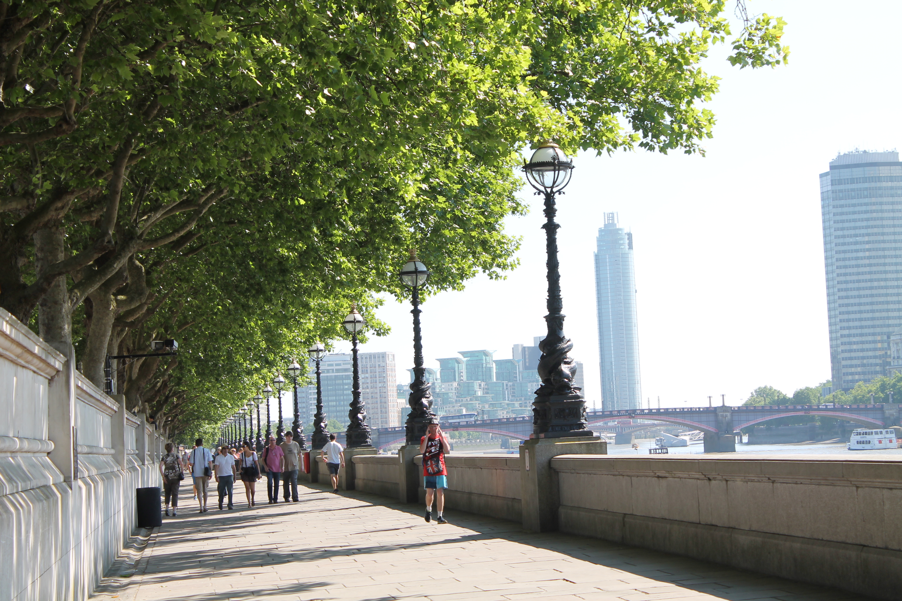 De drukste plaatsen om te wandelen in Londen zijn ongetwijfeld langs de zuidelijke oever van de Thames op The Queen’s Walk. Dit pad loopt vanaf Lambeth Bridge tot een van de bekendste bruggen ter wereld Tower Bridge. Onderweg heb je uiteraard nog heel wat andere mooie bruggen: Westminster Bridge, Golden Jubilee Bridges, Waterloo Bridge, Blackfriars Bridge, Millennium Bridge, Southwark Bridge en London Bridge. Hiervan zijn de meeste toegankelijk voor zowel verkeer als voetgangers, maar enkele bruggen zijn speciaal gemaakt voor voetgangers en verbinden drukke toeristische trekpleisters.