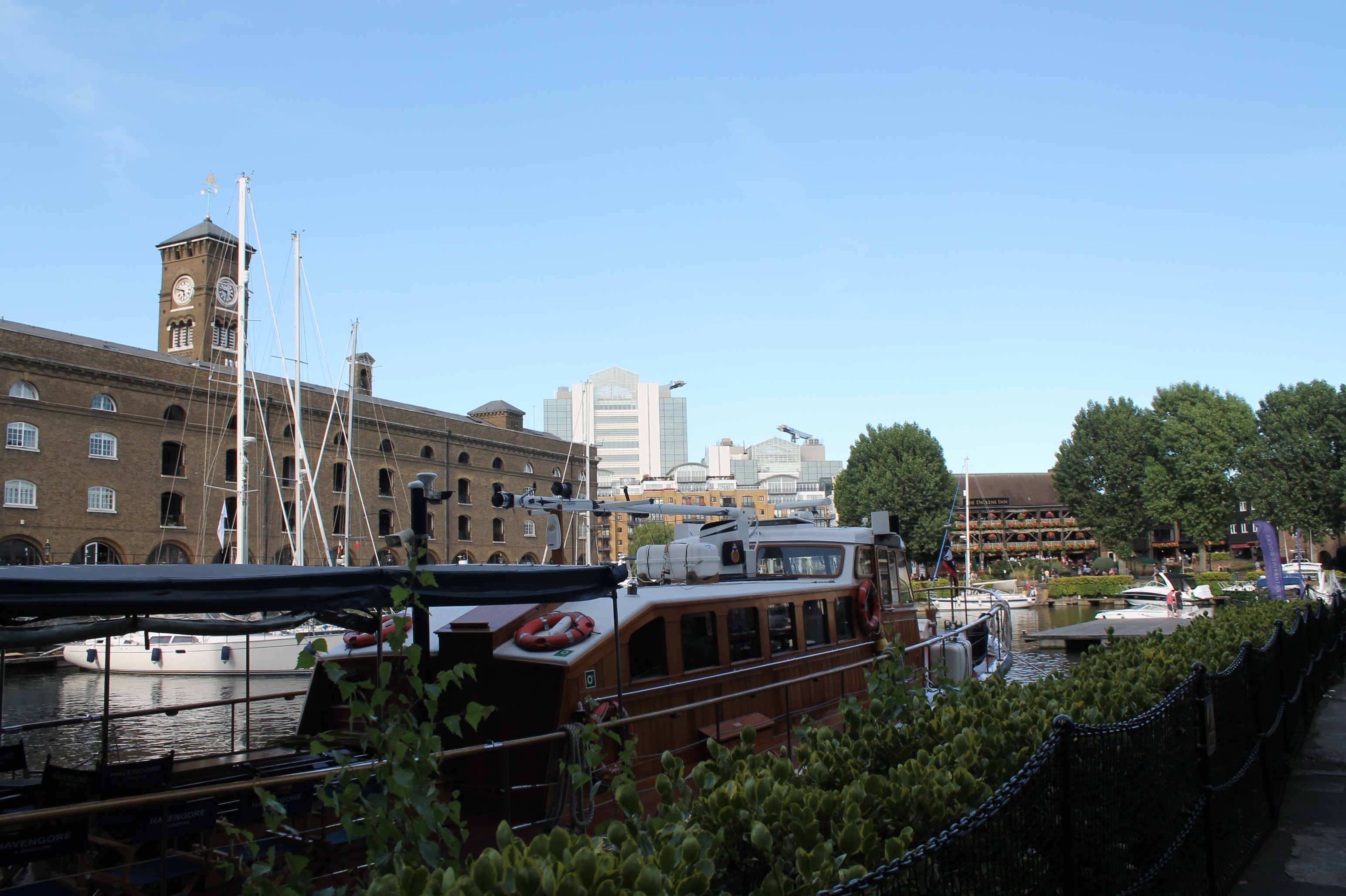 Aan de oostelijke zijde van Tower of London, voorbij de Tower Bridge, kan men even aan de enorme drukte ontsnappen in de St Katharine Docks. Het is een kleine haven met een hotel, enkele huizen en winkels maar vooral een enorm aangename pub of bar en restaurant: The Dickens Inn. Het gebouw alleen al is impressionant: een typisch 18e eeuws “pakhuis” dat gereconstrueerd werd en modern werd ingericht. Het gelijkvloers is The Bar, de eerste verdieping The Pizzeria en de tweede verdieping The Grill. Eenmaal je een plaatsje hebt, kan je rustig en gezellig eten. Zeker op het balkon is het de moeite, want je hebt er een fantastisch zicht op het water en de bootjes van St Katherine Docks, alsook in de achtergrond op de Tower Bridge en verder The Shard. Een simpele pizza of spaghetti smaakt dan overheerlijk. Meer info op http://www.dickensinn.co.uk/.