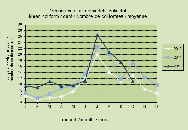 Het coligetal wordt twee keer per maand bepaald. Ons gemiddelde in 2014 was < 10. Het jaargemiddelde van alle bedrijven volgens MCC was 11.