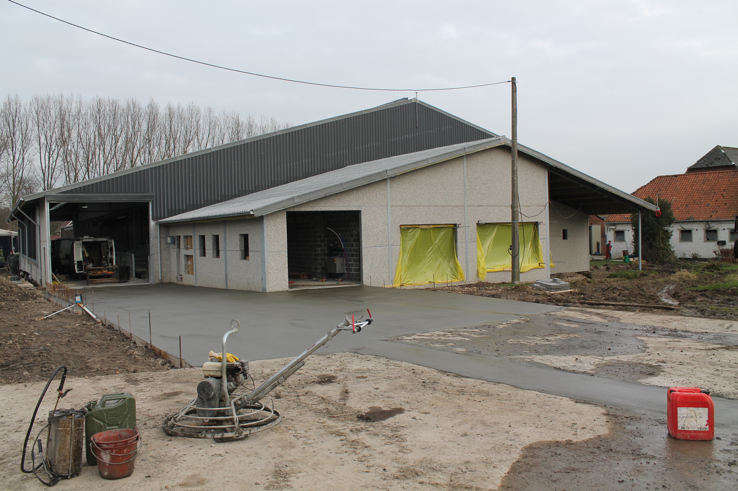 Ook het carrouselgebouw en de carrousel zelf vroegen enorm veel werk. Op 20 december werd de beton gegoten van de carrousel zelf: het plateau waar de koeien op staan, bestaat namelijk uit beton, met daarover dan een coatinglaag. Het was met z’n allen kruiwagens aanvoeren, alles effen krijgen en dan nog alles proper houden.