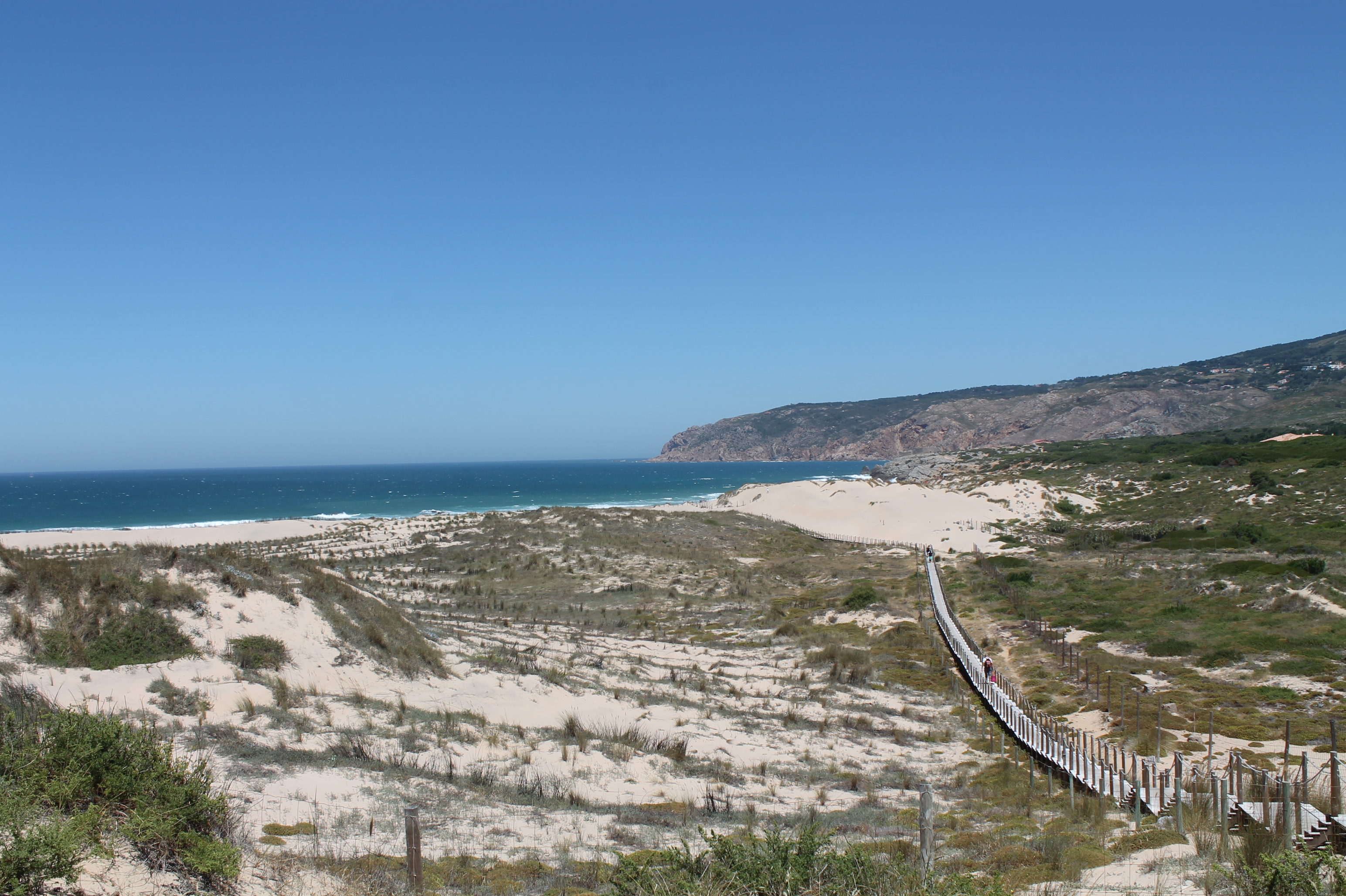 Het strand is erg rustig in vergelijking met de stranden nabij Cascais stad en daarom zeker een aanrader – allemaal krap naast elkaar op een strand liggen vind ik namelijk niet echt relax. Praia do Guincho is echt wel enorm genieten, zeker ook door de ligging, het uitzicht. Het strand, of beter de zee, staat er gekend als een surfersparadijs, aangezien het westelijk gelegen is aan de Atlantische Oceaan. Dat zorgt nog voor een extra zicht: surfers die hun uiterste best doen de wilde golven te trotseren. Ik probeerde eens in het water te gaan maar het bleef bij proberen want die zee wou me er gelijk in trekken en ik vond die toch wel wat te sterk – ik had een beetje schrik en ik had sowieso geen zin om daar onaangenaam verrast te worden. Dat wou ik toch even opmerken. Hieronder nog meer foto’s om jullie verder te doen genieten en wegdromen.