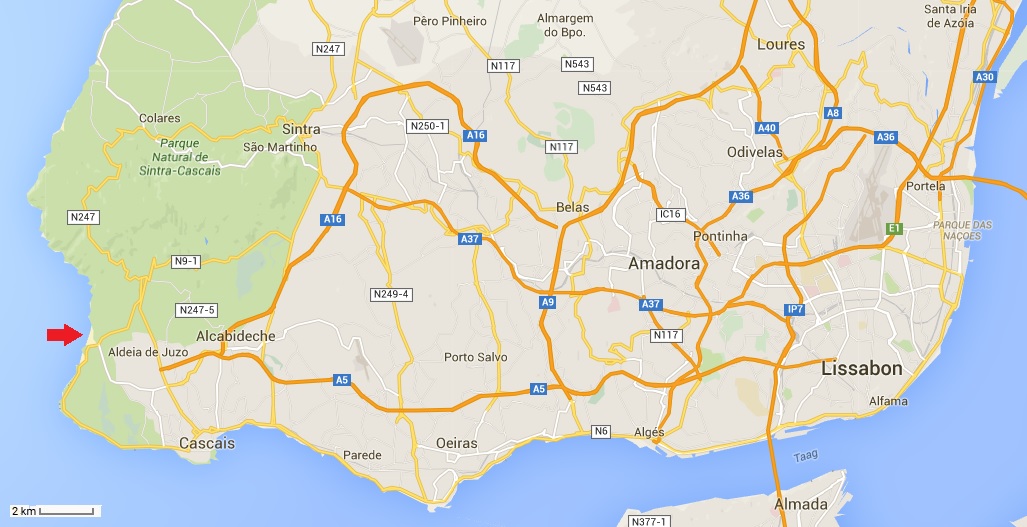 naar het meest westelijke punt van het Europese vasteland, Cabo da Roca.