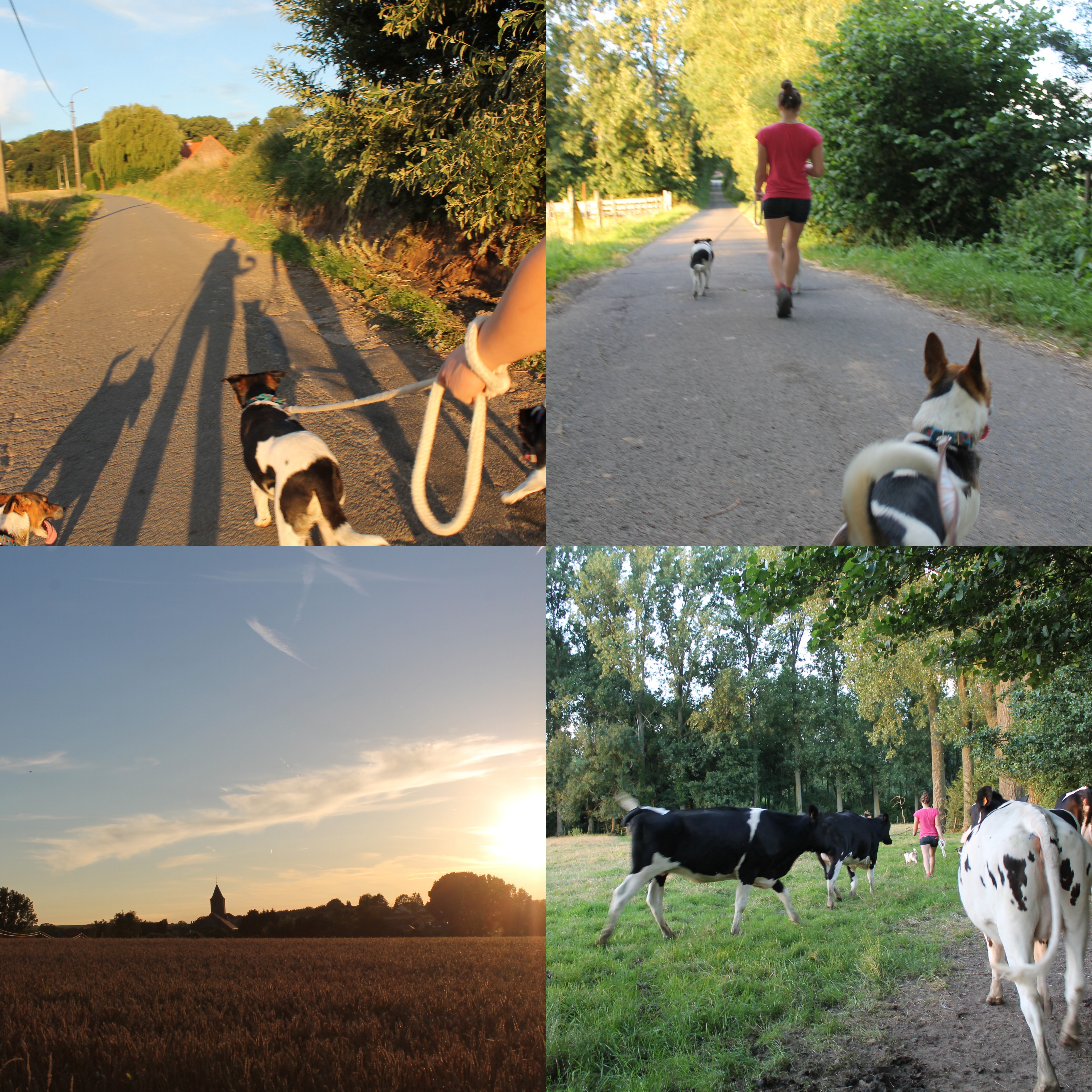 Niets meer ontspannend dan na een dag vol werk ’s avonds een wandeling te maken bij zonsondergang. Samen met de zussen of nichten en uiteraard met de hondjes erbij. Dan passeren we soms langs de beestjes op de weide om hen eens te controleren. Onze streek word ik trouwens nooit beu. Ook in de herfst – en winter en lente – vallen er hier prachtige wandelingen te maken.