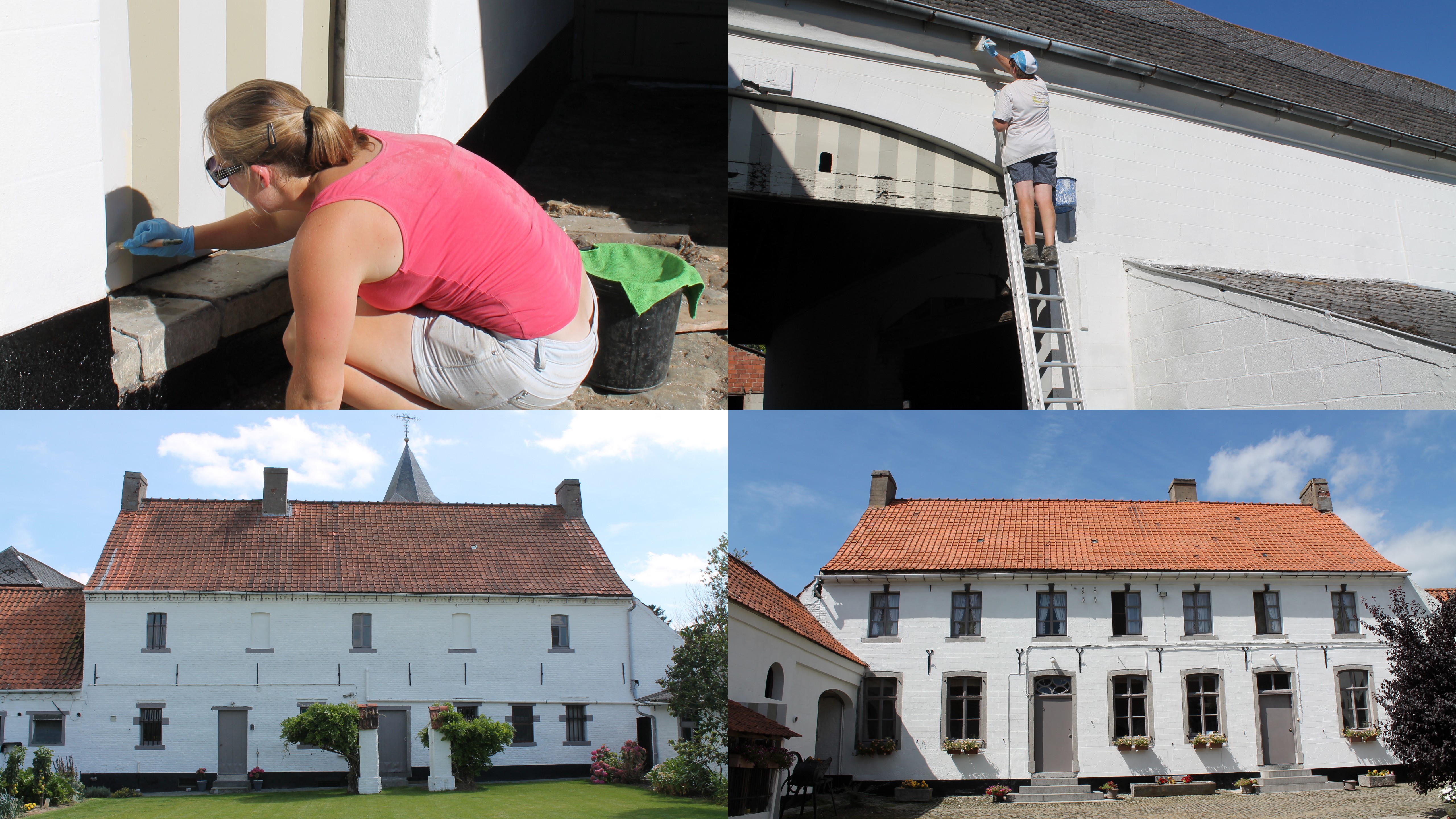Waarschijnlijk het grootste avontuur deze zomer, letterlijk dan: de vierkantshoeve verven. Al die muren, deuren en ramen! Daar dat kleurtje, hier dat, dan nog afwerkingen… Op de ladder of op de grond, schuilend voor de regen of bakkend onder de zon… Verven, verven, verven en verven. Maar o zo blij met het resultaat! Nu kunnen we weer een paar jaar verder.