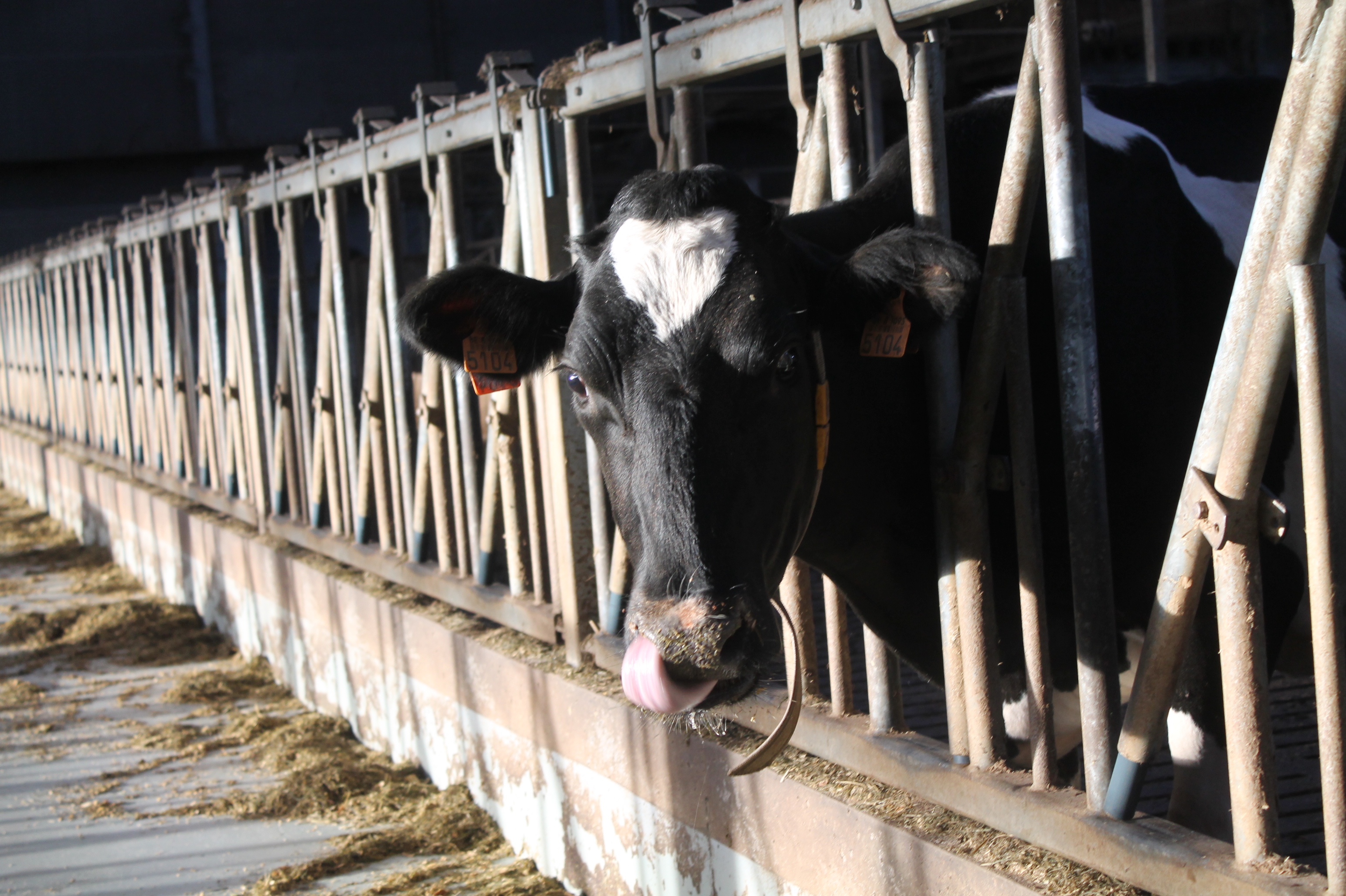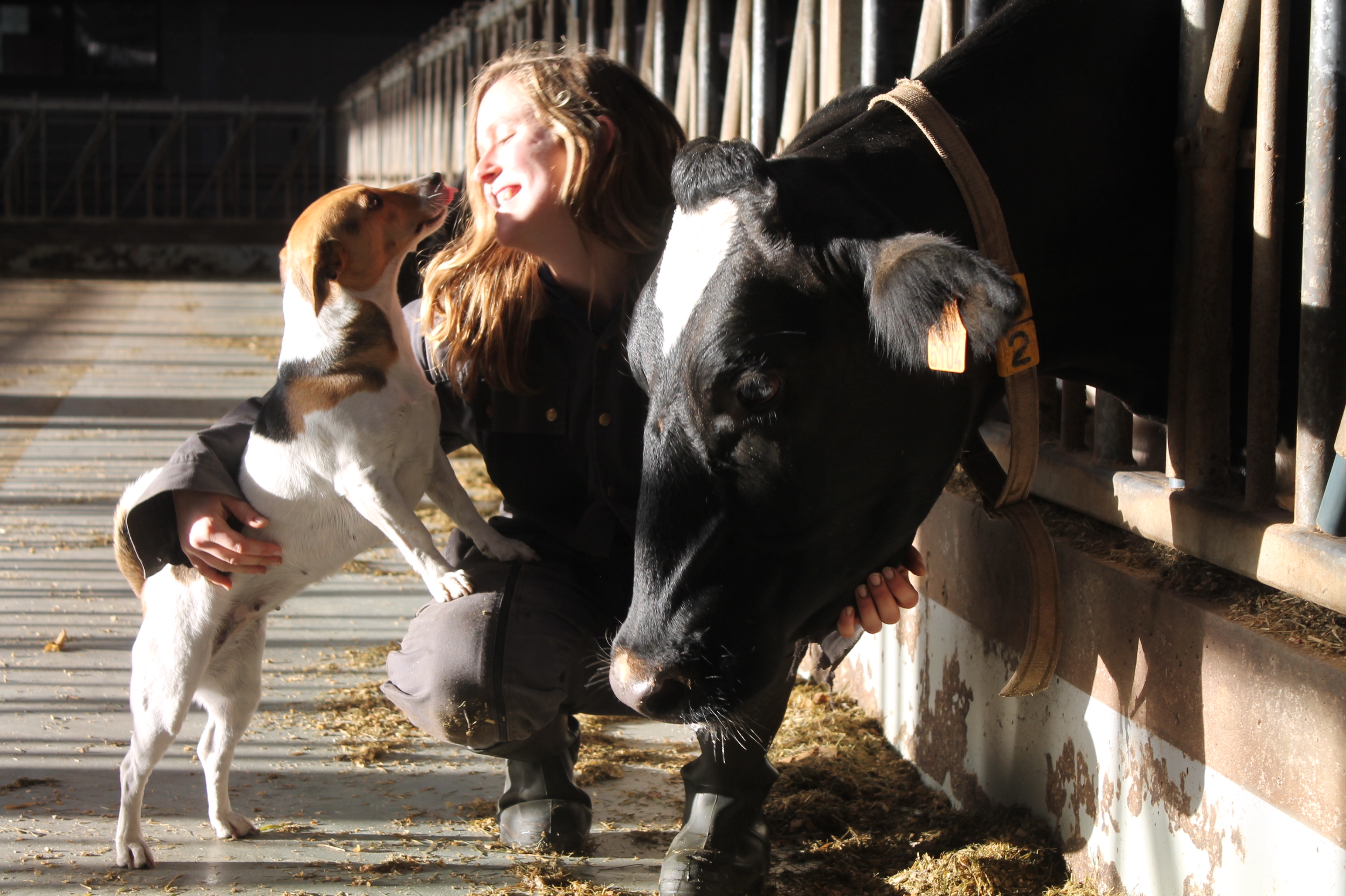 Deze morgen scheen de zon nog, nu is het al een heel ander weertje! Gelukkig zitten alle beestjes intussen veilig en wel op stal. In de regen hoeven wij momenteel niet per se te werken, al voeder ik sowieso elke voormiddag, welk weer het ook is. Drie jaar terug was het melken in de melkwagen niet zo geestig wanneer het waaide en regende. Nu in de carrousel horen en voelen wij niet veel van het weer. In de melkveestal viel de zonneschijn van deze morgen prachtig binnen. Ik kon een paar mooie plaatjes maken en koos de twee beste uit. M’n zus Stefanie nam ook een paar foto’s van mij met Tisha en Becky, daarvan toon ik degene die het meest zegt…