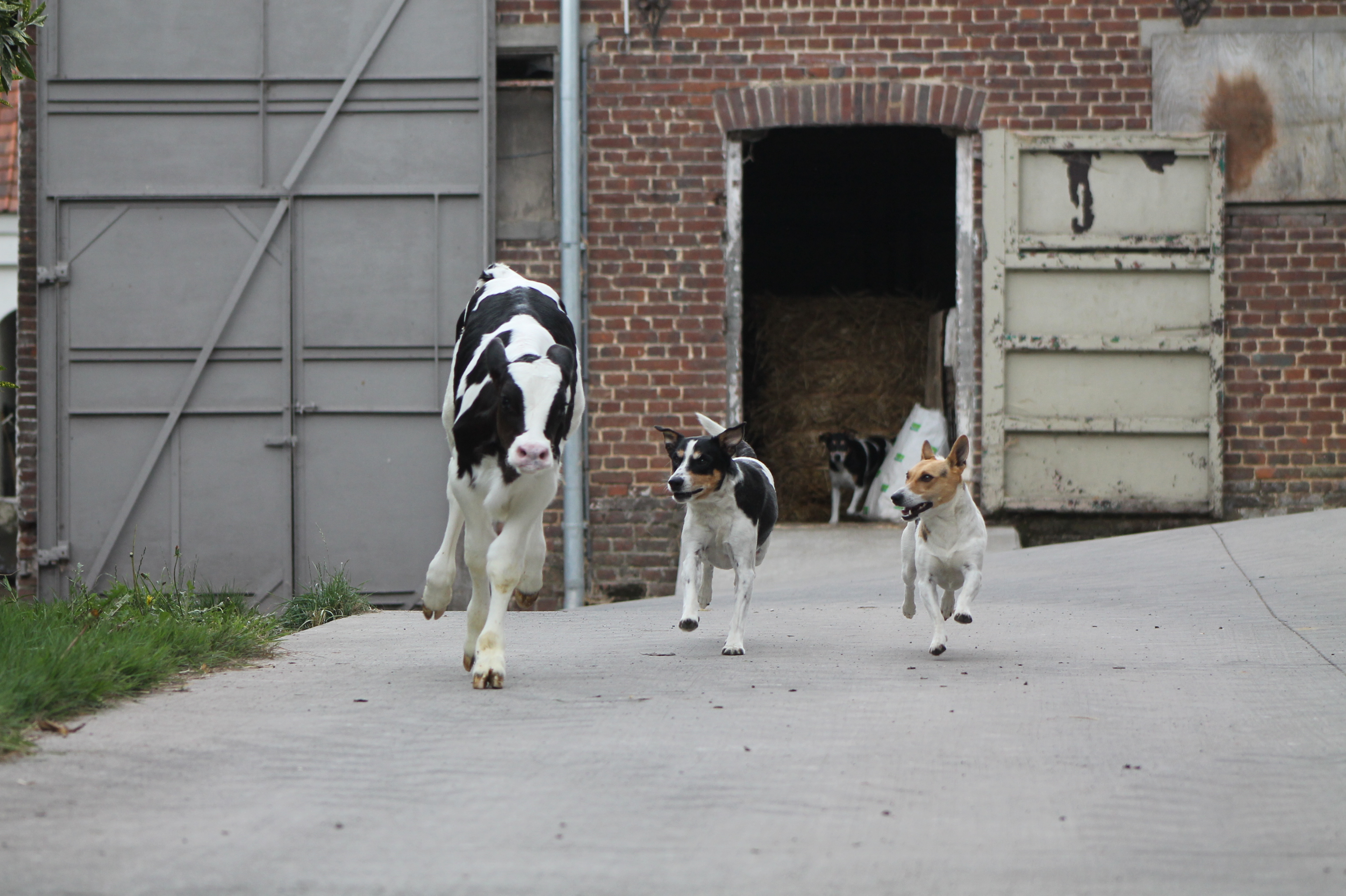 Vorige week vertelde ik al dat onze topkoe Becky na vier stiertjes eindelijk een vaarsje kreeg. We zijn nog steeds super gelukkig daarmee! Ik kon dus ook niet anders dan in haar eerste levensweek al eens een fotoshoot van en met haar te houden. Ik toon er jullie vijf, waarvan de eerste er één is van ik met haar en ik ben er gek op! Verder zien jullie dat ook de hondjes gek zijn op Bex, want dat is haar naam geworden.