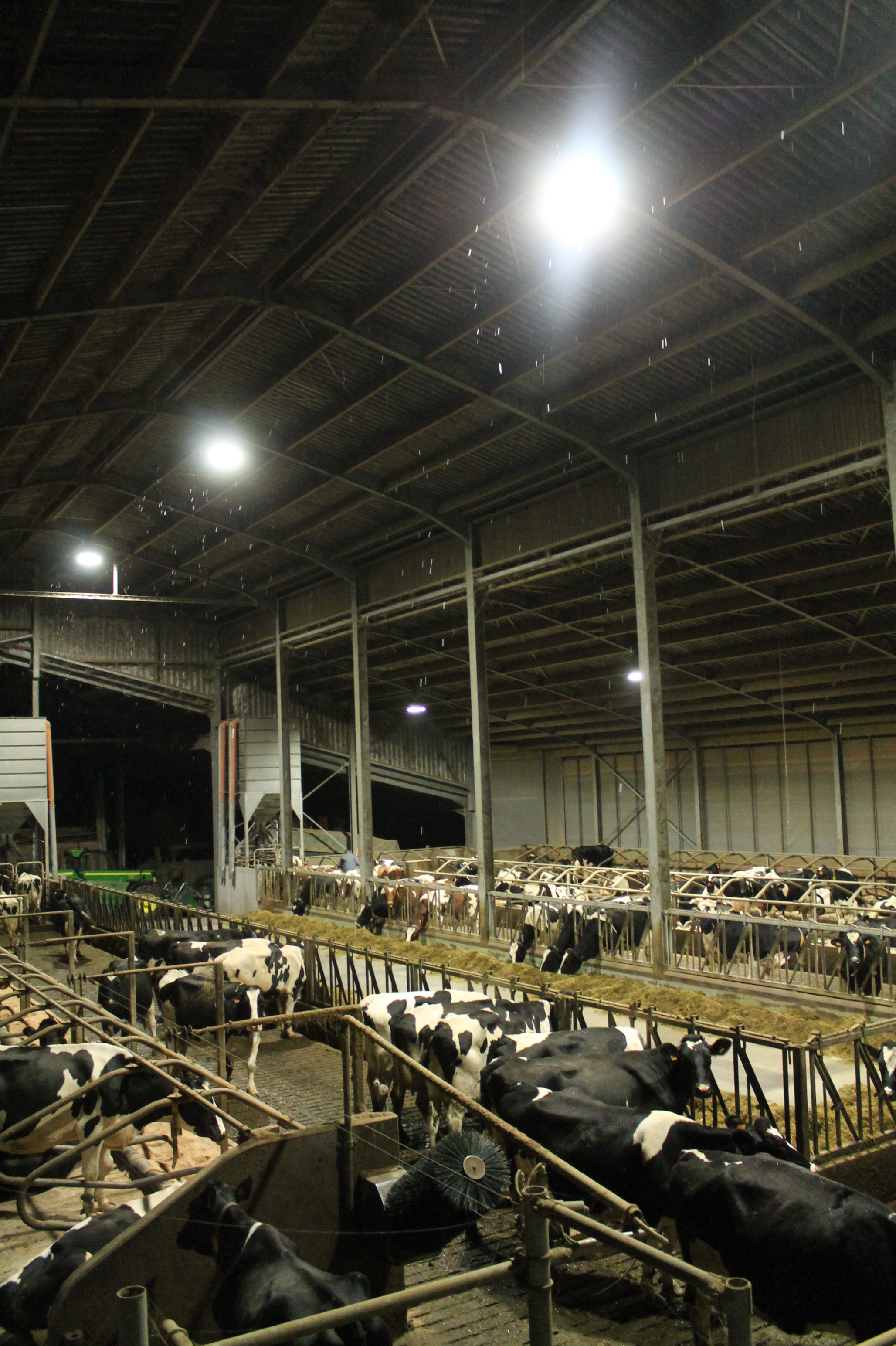 Het is beginnen sneeuwen! Als het bij een beetje blijft, kan dat geen kwaad. Het zorgt zelfs voor mooie en unieke beelden: dwarrelende sneeuwvlokjes in de stal. Dat gebeurt niet altijd, het hangt af van de wind en of de neerslag dan door de open nok van onze melkveestal naar beneden valt. Dit jaar viel er trouwens al eens sneeuw, op 15 januari om precies te zijn, en daar maakte ik toen een korte video van. De hoeveelheid sneeuw was vandaag en begin dit jaar beperkt, maar op 20 december 2009 was dat wel anders!