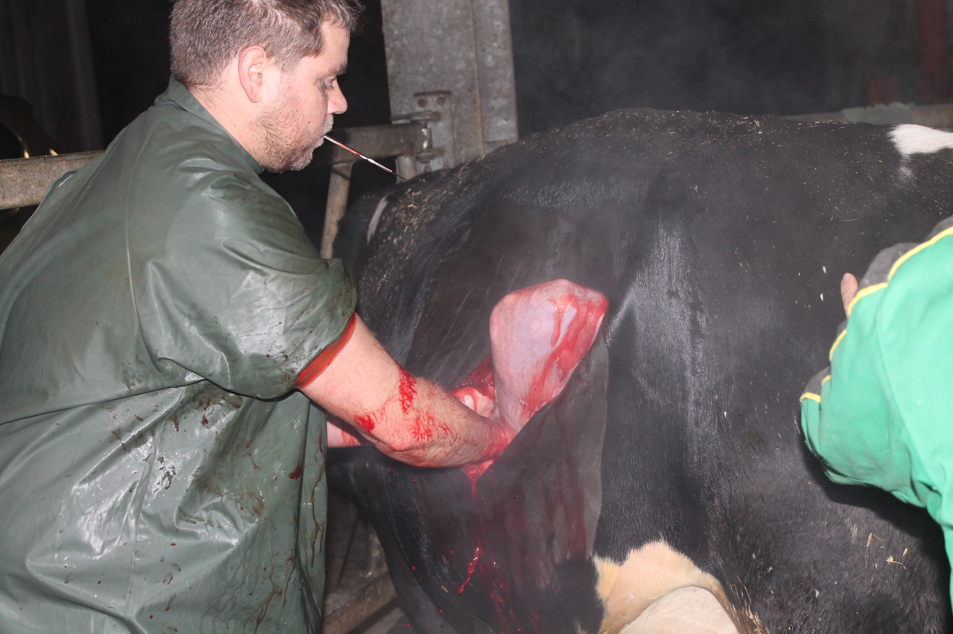 Een keizersnede bij het Belgisch-Witblauw ras, een vleesveeras, wordt standaard gedaan omdat de kalveren te groot zijn (dubbelgespierde schouder) en niet door het nauwe geboortekanaal geraken. Bij melkvee, bij het Holstein-Friesian ras, is een keizersnede uitzonderlijk want meestal kalven ze zonder problemen alleen. Vaarzen, runderen die voor het eerst moeten kalven, houden we wel goed in de gaten. We helpen waar het nodig is. In februari hadden we nog een heel zware kalving, omdat het ging om een misvormd geaborteerd kalf door het Schmallenbergvirus.