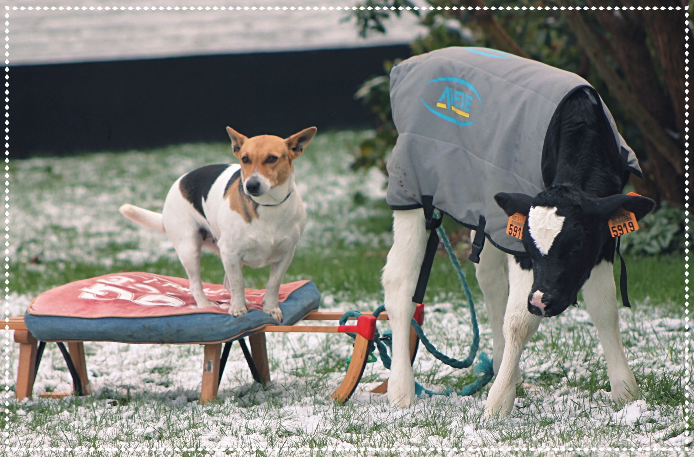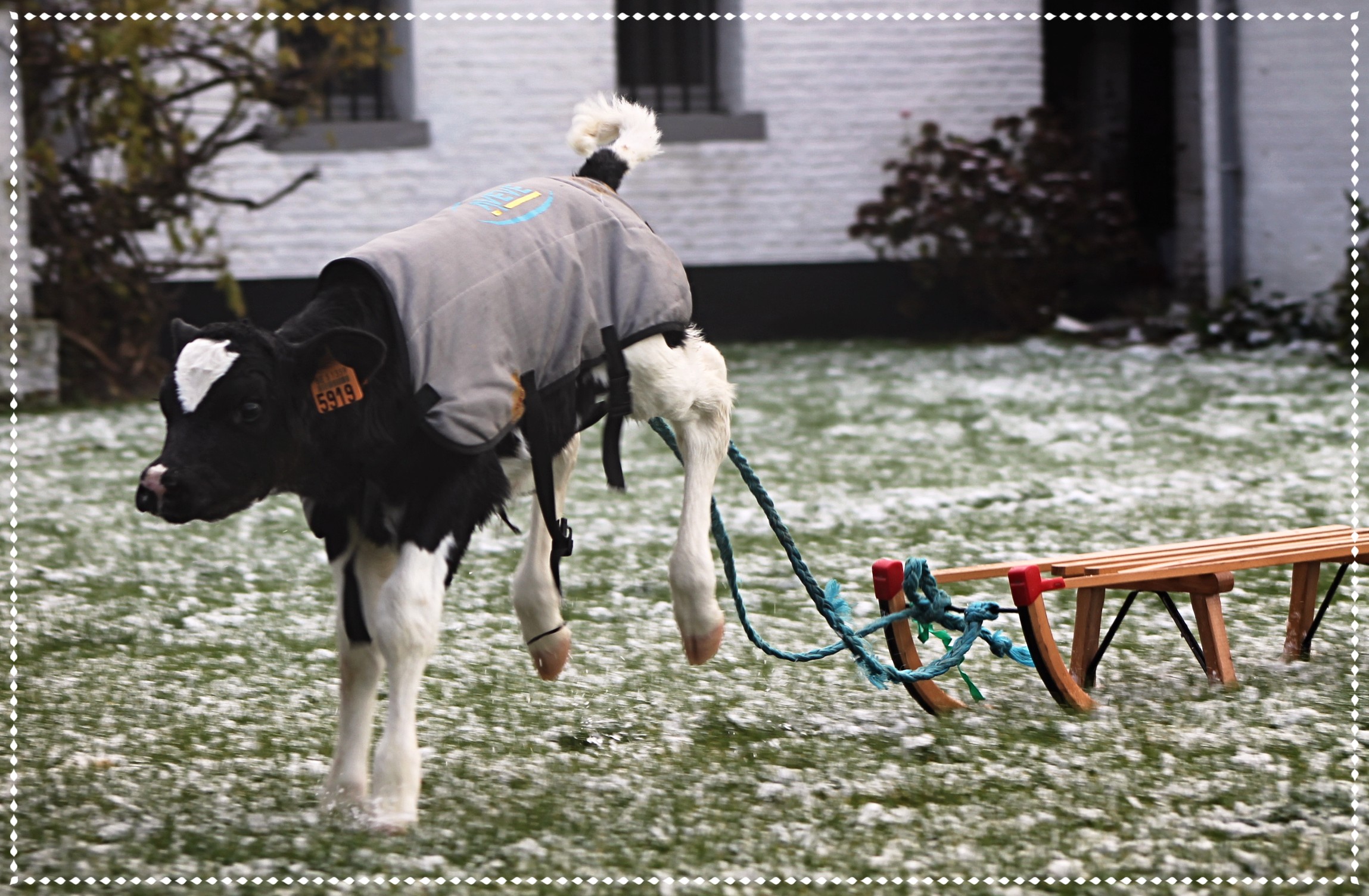 We zijn vandaag al 24 december! Tien dagen geleden gaf ik jullie een voorsmaakje van m’n kerstfoto’s. Ik beloofde die vandaag te publiceren, dus hier ben ik, samen met m’n wensen: geniet allemaal van de feestdagen! Het is de laatste dagen, zelfs weken, dan wel enorm grijs, het is aan ons om er warme en lichtrijke feesten van te maken. Vergeet zeker niet dat dit al in de kleine dingen zit… Zoals de foto’s die ik jullie nu zal tonen, die zijn vrolijk en hartverwarmend! Vorig jaar wenste ik jullie Merry Christmas! met foto’s van een kalfje met een kerstmuts, dit jaar gebruikte ik een slee in de sneeuw. Niet zo makkelijk, maar het leverde wel heel erg fijne foto’s op! Prettige feestdagen!