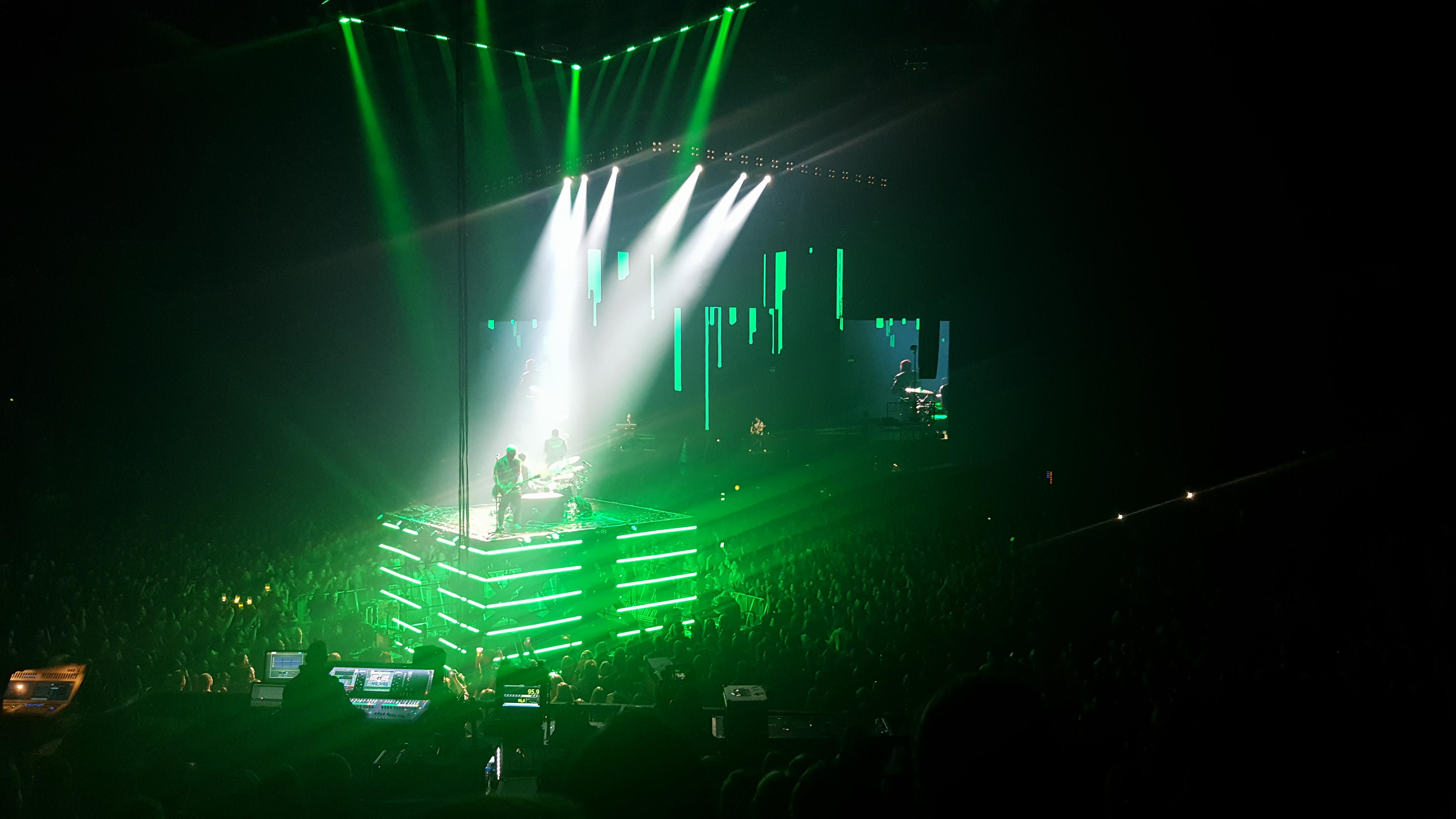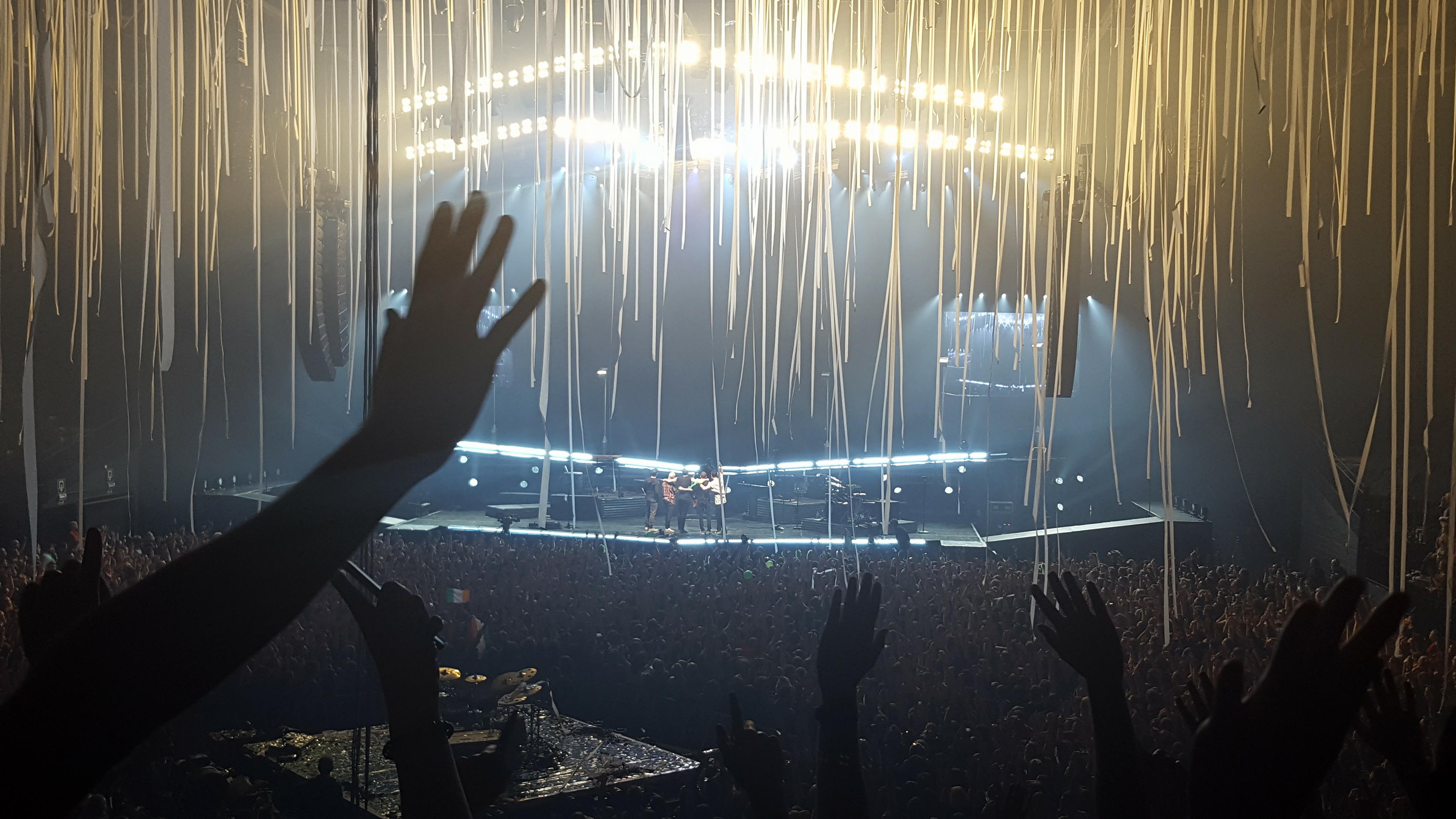 We kregen bij het binnenkomen allemaal een bonnetje voor een gratis drankje, dat we tegen het einde van het tweede lied moesten afgehaald hebben aan de bar. The Script trakteerde dus de 8000 aanwezigen op een drankje! Ze deden dit omdat het Saint Patrick’s Day was, een belangrijke Ierse feestdag, en omdat ze dus een wereldrecord wouden zetten, samen met ons! Het is nog wat afwachten of het officieel wordt goedgekeurd, maar het zorgde allesinds voor een memorabel moment! Samen met The Script een pintje drinken, niet iedereen kan dat zeggen he! Daarna weerklonk het prachtige Paint The Town Green en lichtte de volledige zaal ook groen op. Ondertussen verplaatsten ze zich ook door het publiek naar het grote podium vooraan.