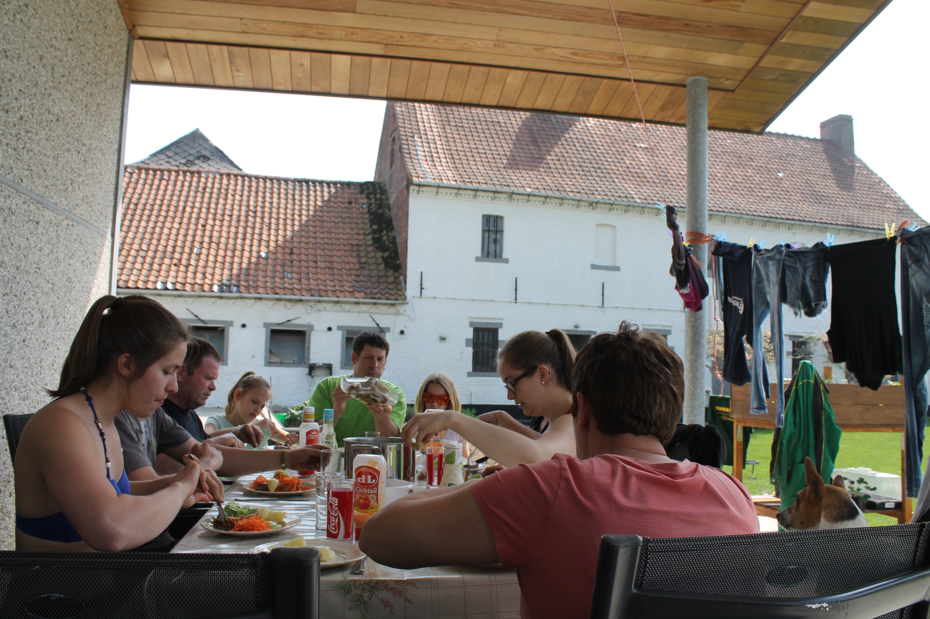 Nog blijer zijn we met ons prachtig terras, dat we vroeger niet hadden. Zo eten we nu geregeld eens buiten, hoe zalig is dat niet! Vaak met wat familie en vrienden… Dat is pas genieten, zelfs tussen de was!