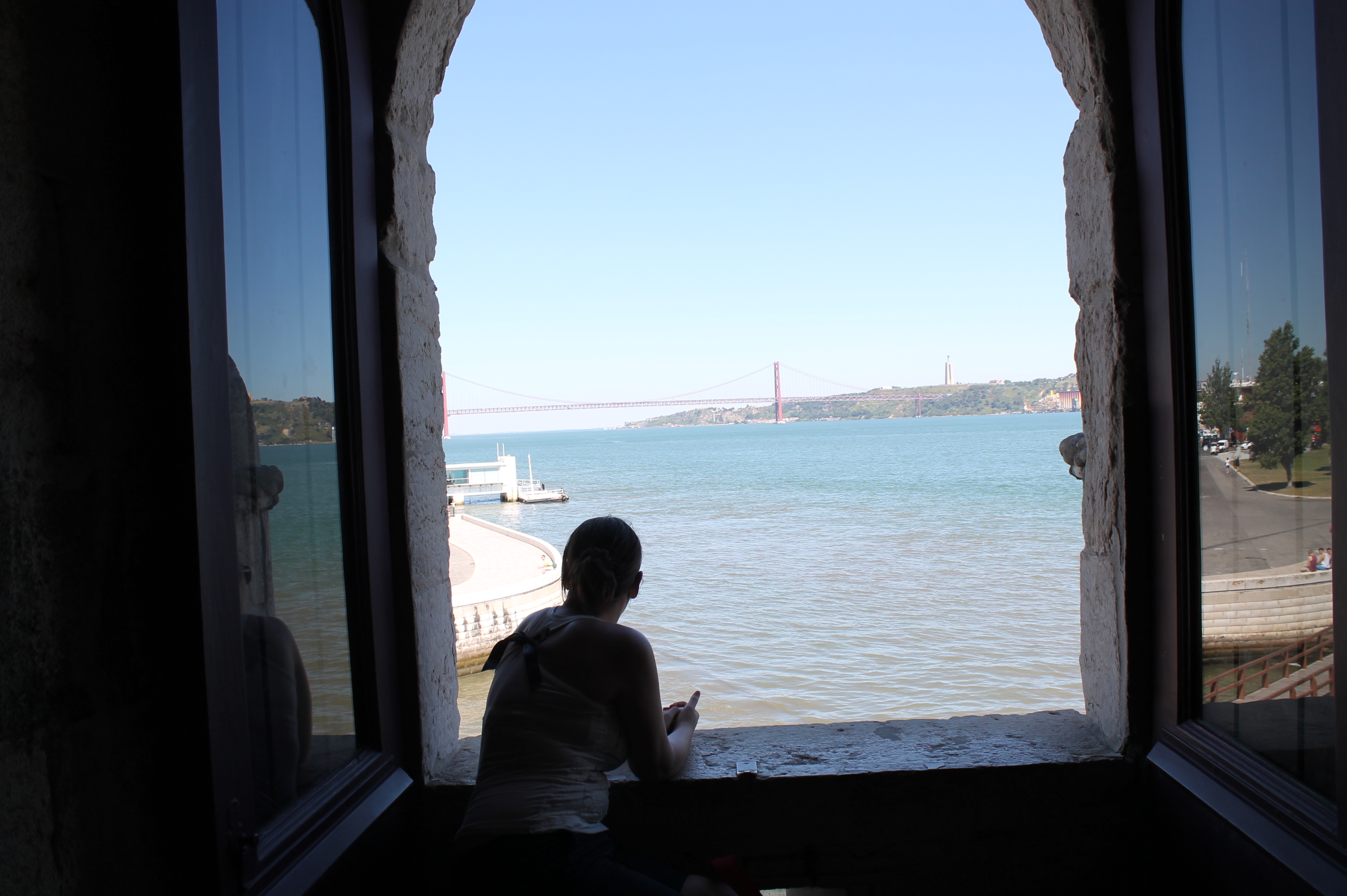 Van hieraf kunnen we in oostelijke richting veel prachtigs in één blik bewonderen. Uiteraard het Monument der Ontdekkingen, maar daarachter is ook de Ponte 25 de Abril goed te zien. Deze bekende rode brug is 70 meter hoog en 2,3 km lang. Ze doet denken aan de beroemde Golden Gate Bridge in San Francisco. Aan de overzijde van de Taag, nabij de brug, zien we dan weer Cristo Rei. Dit is een 25 meter hoog standbeeld van Jezus Christus, geïnspireerd door het 5 meter grotere beeld in Rio de Janeiro.