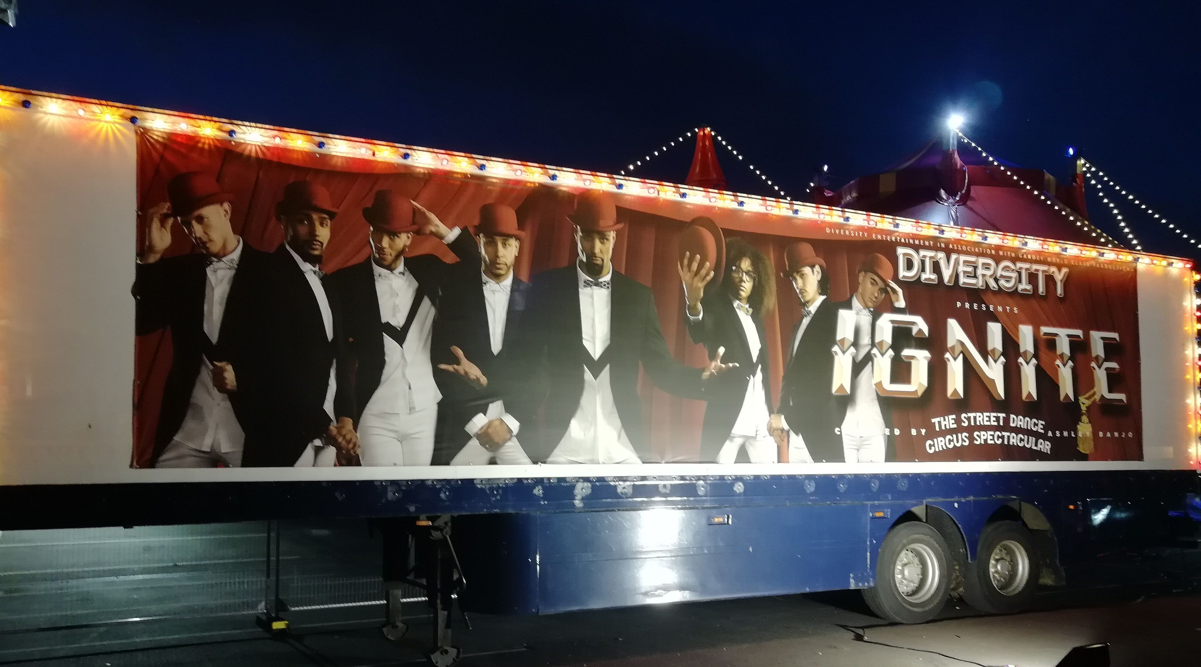 Ik zei dat tegen mezelf omdat Diversity me dat motto ook verkondigde: dream, believe, achieve. Sinds het ontstaan van de groep hebben ze daar altijd in geloofd en hebben ze al vele dromen waar gemaakt. Ze verkondigen de boodschap ook vol enthousiasme. Dat hebben we gehoord én gevoeld. Want oh my god, wat was hun show geweldig! Van begin tot einde vol spektakel! Niet alleen door de dans, maar ook door de circusacts, want voor deze tour was het thema circus. Vandaar ook de naam: Ignite The Street Dance Circus Spectacular. Ik had m’n kodak daar niet bij want ik wou ten volle van de show genieten, maar Stefanie nam wel enkele foto’s met haar smartphone.