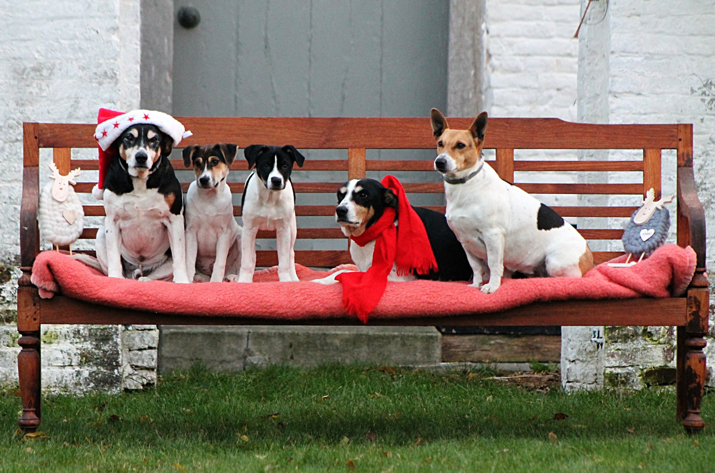 Het is alweer 24 december! Net als vorig jaar en het jaar ervoor post ik vandaag enkele leuke kerstfoto’s van onze diertjes! Met deze foto’s stuur ik jullie warme wensen vanop de boerderij. Warm was m’n thema want ik deed enkele dieren een rode sjaal om. Hieronder de prachtige foto van onze vijf hondjes: Milo met de kerstmuts, de kleintjes Toby en Blacky, Bavo met de sjaal en ons topmodel Tisha. Verder krijgen jullie er nog enkele, maar ook topkoe Becky en kalfje Pluisje deed ik de sjaal eens om. Happy Christmas time, everyone!