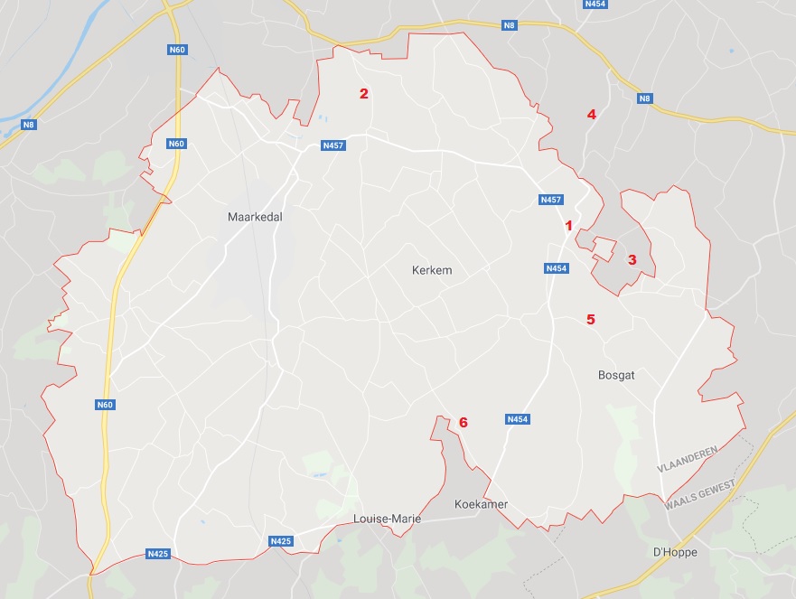 Ik toon alle plaatsen met nummers op onderstaande kaart van Maarkedal. Ik zal nu nummer per nummer prijs geven en een bijhorend verhaal, met foto’s, vertellen.