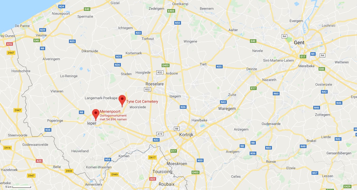 Ik bezocht de Menenpoort en Tyne Cot Cemetery op respectievelijk 9 en 10 juni 2019 tijdens een weekendje met familie. We verbleven in Sunparks Oostduinkerke, waar we ook de kust van Nieuwpoort bezochten.
