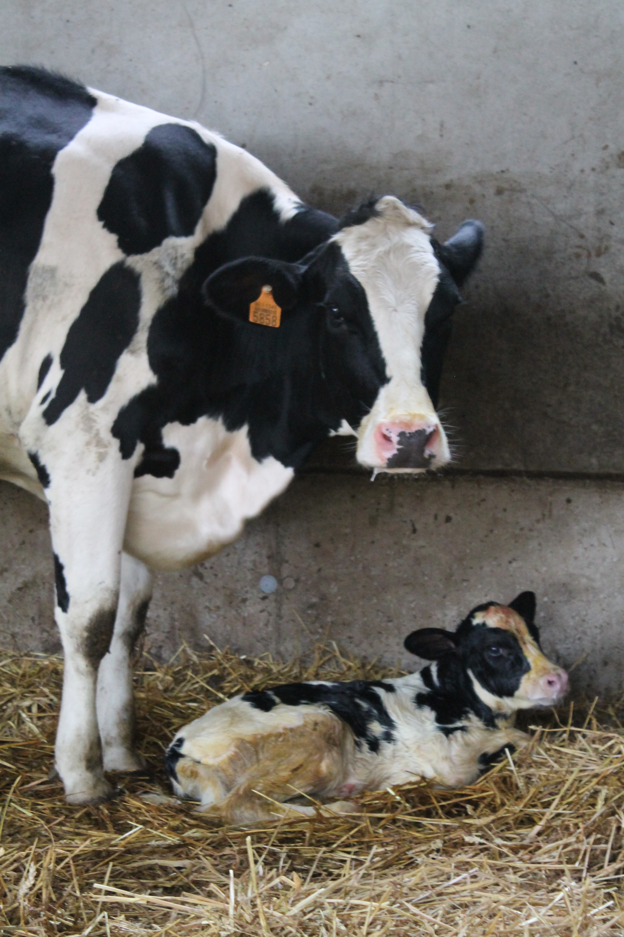 Vrijdag de dertiende bracht ons geen ongeluk: de geboorte waar we op aan het wachten waren, bracht ons een vaarsje! De eerste dochter voor Bex, de eerste kleindochter voor topkoe Becky! Aangezien het jongvee door een stier wordt gedekt, kunnen we het geslacht niet kiezen – bij kunstmatige inseminatie kan men kiezen voor gesekst sperma. Het was dus 50-50 en we hadden geluk: het was een vaarsje en ze kreeg meteen de lekkere naam Bellini. Daarmee heeft achtjarige Becky nu naast twee dochters – vorig jaar werd Bessy geboren – ook een flinke kleindochter! De familie zet zich verder en dat maakt me heel gelukkig! Verder de eerste foto!
