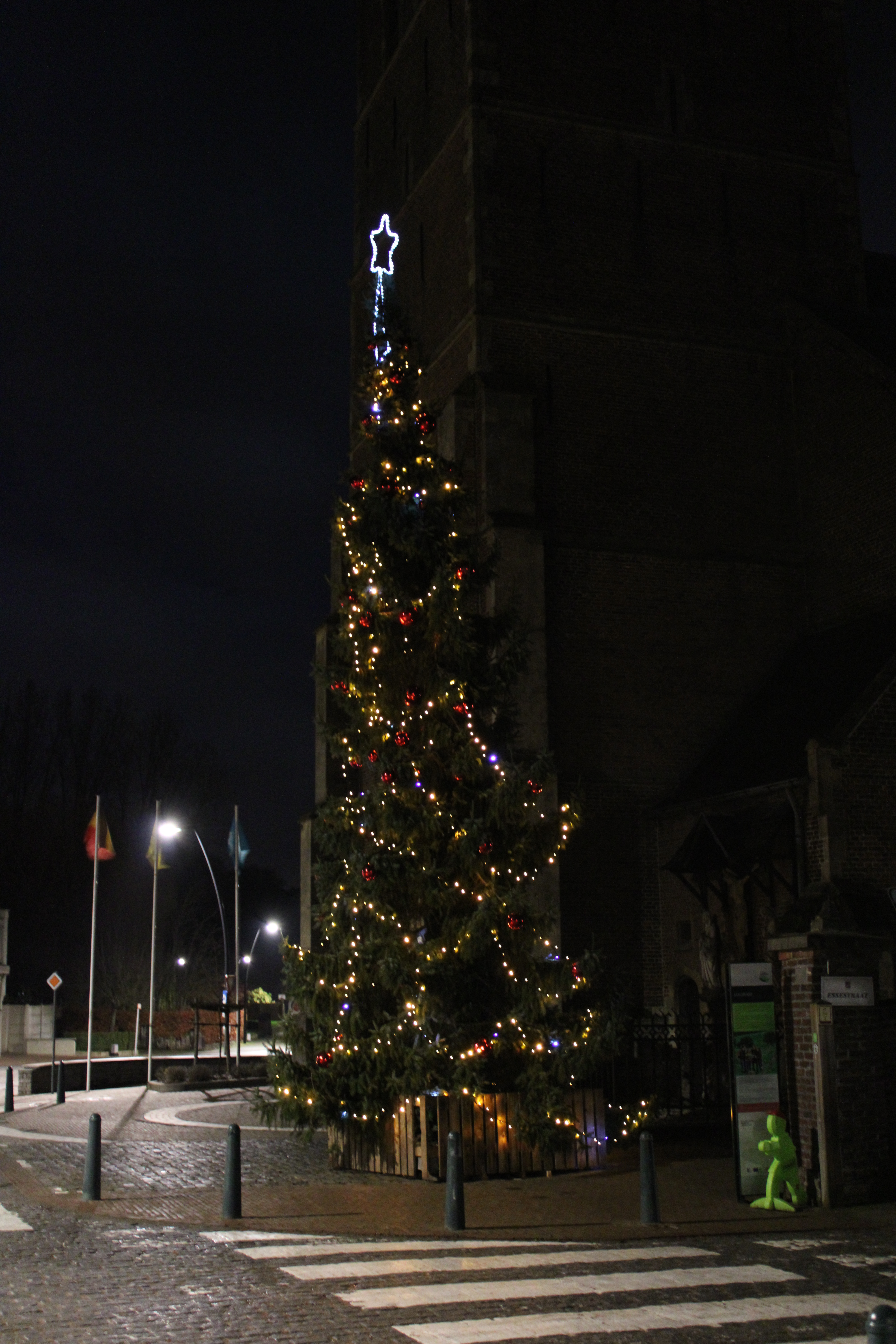 Schorisse is misschien een klein dorpje, we hebben wel al enkele jaren tijdens the most wonderful time of the year een grote kerstboom! Initiatiefnemers zijn de heren van het feestcomité Wij Heeren van Schoorisse – bekend van evenementen als La Doesse Schuuse en De Mirakelmakers van Schuuse. M’n papa en nonkel hebben al tal van bomen veilig naar het kerkplein gebracht! Dit jaar staat er sinds afgelopen zaterdag een prachtig exemplaar te blinken, verder in dit bericht zien jullie hoe hij er uit ziet! Twee jaar geleden kon ik trouwens een magische foto nemen van de grote kerstboom in hartje Schuuse…