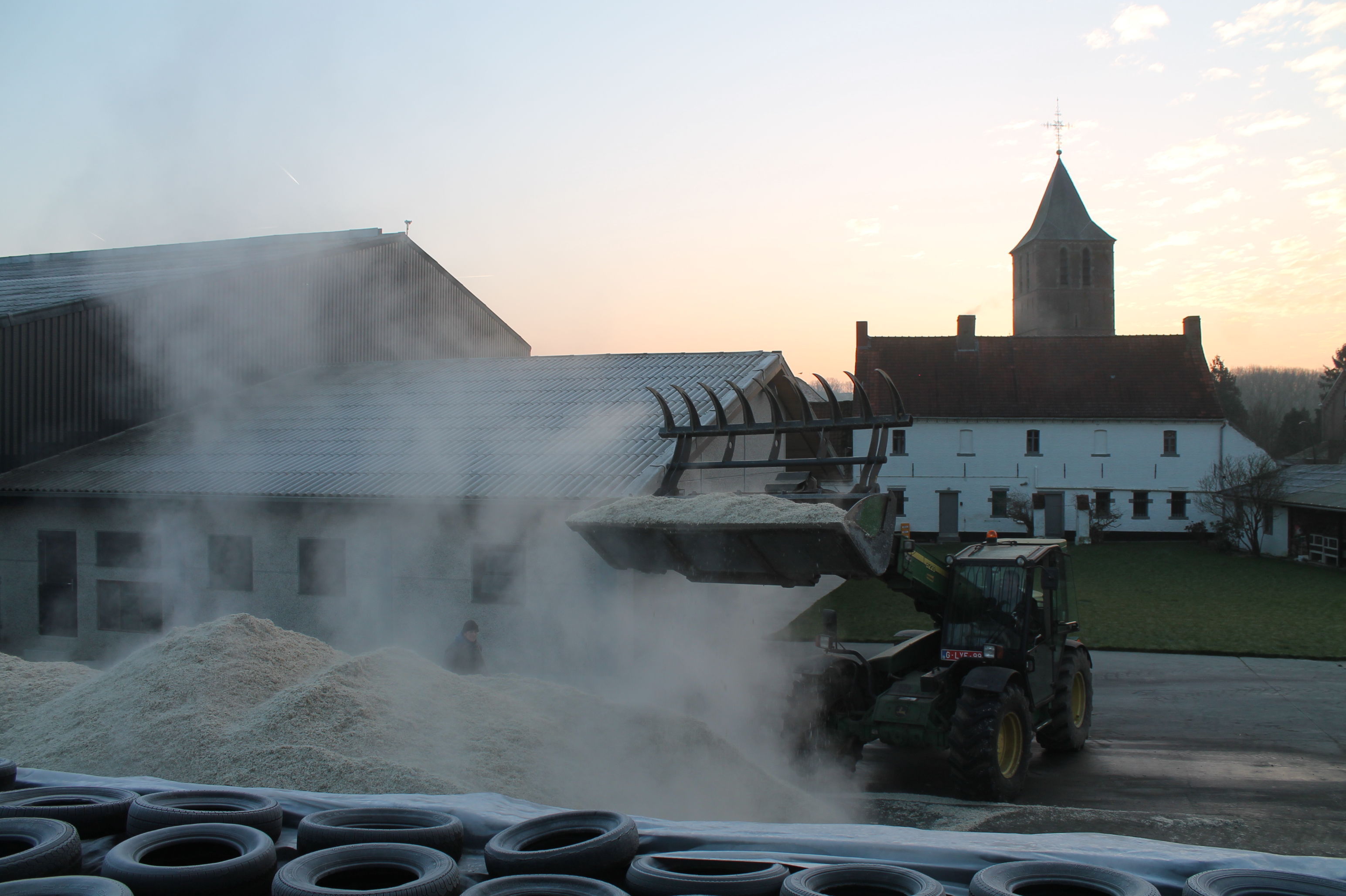 Dit jaar nam ik geen foto’s maar van twee jaar terug kan ik er wel tonen. Het was een koude ochtend, op 14 januari 2018. Omdat deze perspulp warm is bij levering, zorgde dat voor stomende plaatjes.
