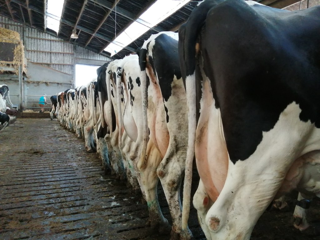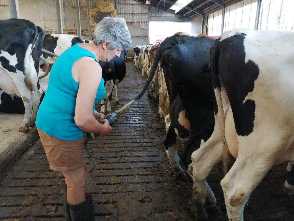 Dit keer deden we enkel de staarten. Het haar op de uiers en achterbenen was zo lang niet, dus was het nog niet nodig. Hoe hebben we nu hun staarten geschoren? We hebben de koeien vastgezet in de voederhekkens, zodat ze allemaal mooi naast elkaar op een rij stonden – of beter gezegd: enkele rijen. Via verlengkabels in de voedergang konden we onze scheermachines aansluiten. Mama Veerle en ik schoren zo vlot één voor één alle staarten. Papa Herman zorgde ervoor dat de verlengkabels goed mee opschoven. Na een goed uur hadden we alle 139 staarten geschoren! Momenteel melken we dus inderdaad 139 koeien, als er nog droogstaande koeien kalven, zullen we hun staarten ook scheren.