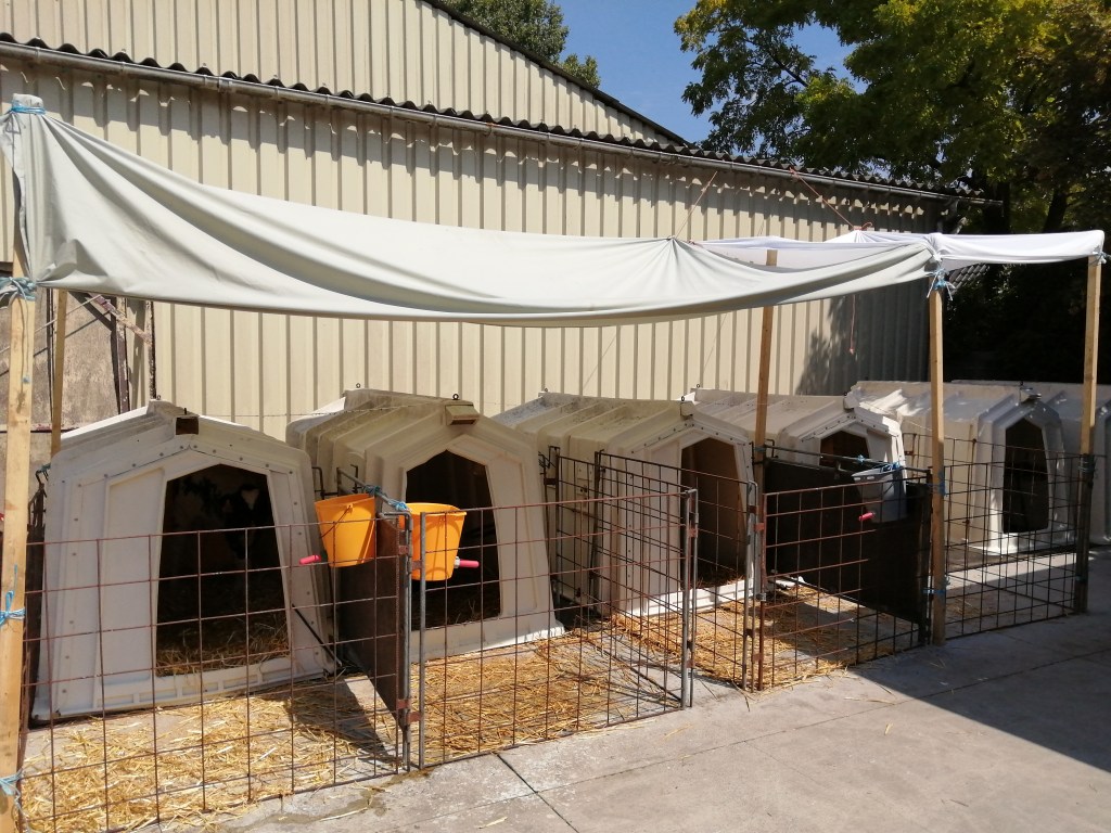 Op stal zien we het water en voeder elke keer we door de stal lopen. Op de weides controleren we nu eens extra. Voorlopig komen ze niets te kort. Het blijft wel in de gaten houden met deze extreme weersomstandigheden. Op elke weide is er schaduw, dus dat is ook zeker geen probleem. Hier thuis hebben we boven de kalveriglo’s wel enkele doeken omhoog gehangen.