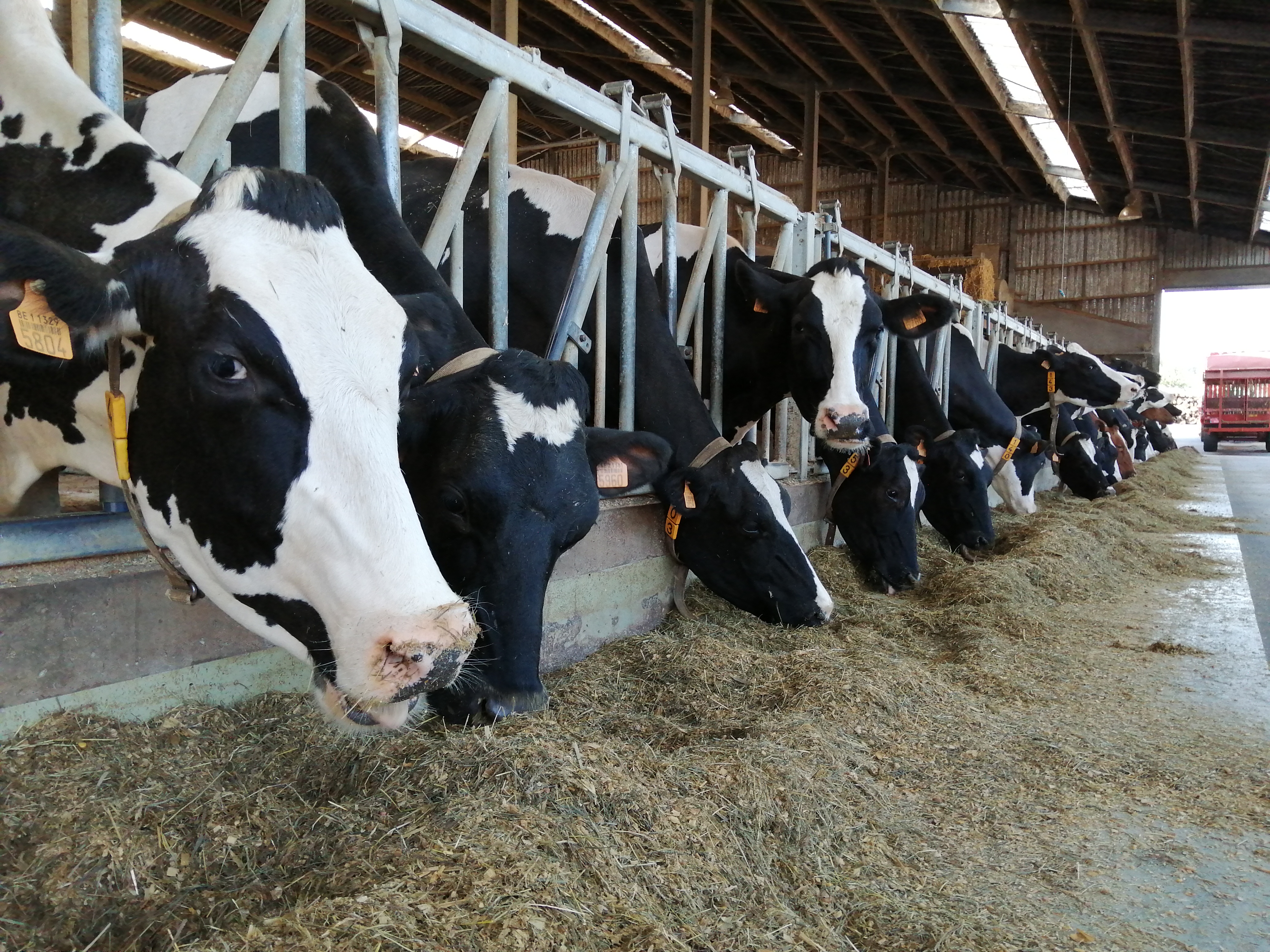 Naast goed kunnen drinken, moeten de koeien ook goed blijven eten. Om hun eetlust op peil te houden voederen we in meerdere keren. ’s Ochtends of in de vroege voormiddag en in de late namiddag voederen we een mengsel van maïs-voordrooggras-perspulp-eiwitkern. Bij de kuilen is het nu extra belangrijk al het losse voeder op te scheppen zodat het niet warm kan worden. Ook in de voedergang moet het restvoer uiteraard elke dag verwijderd worden.