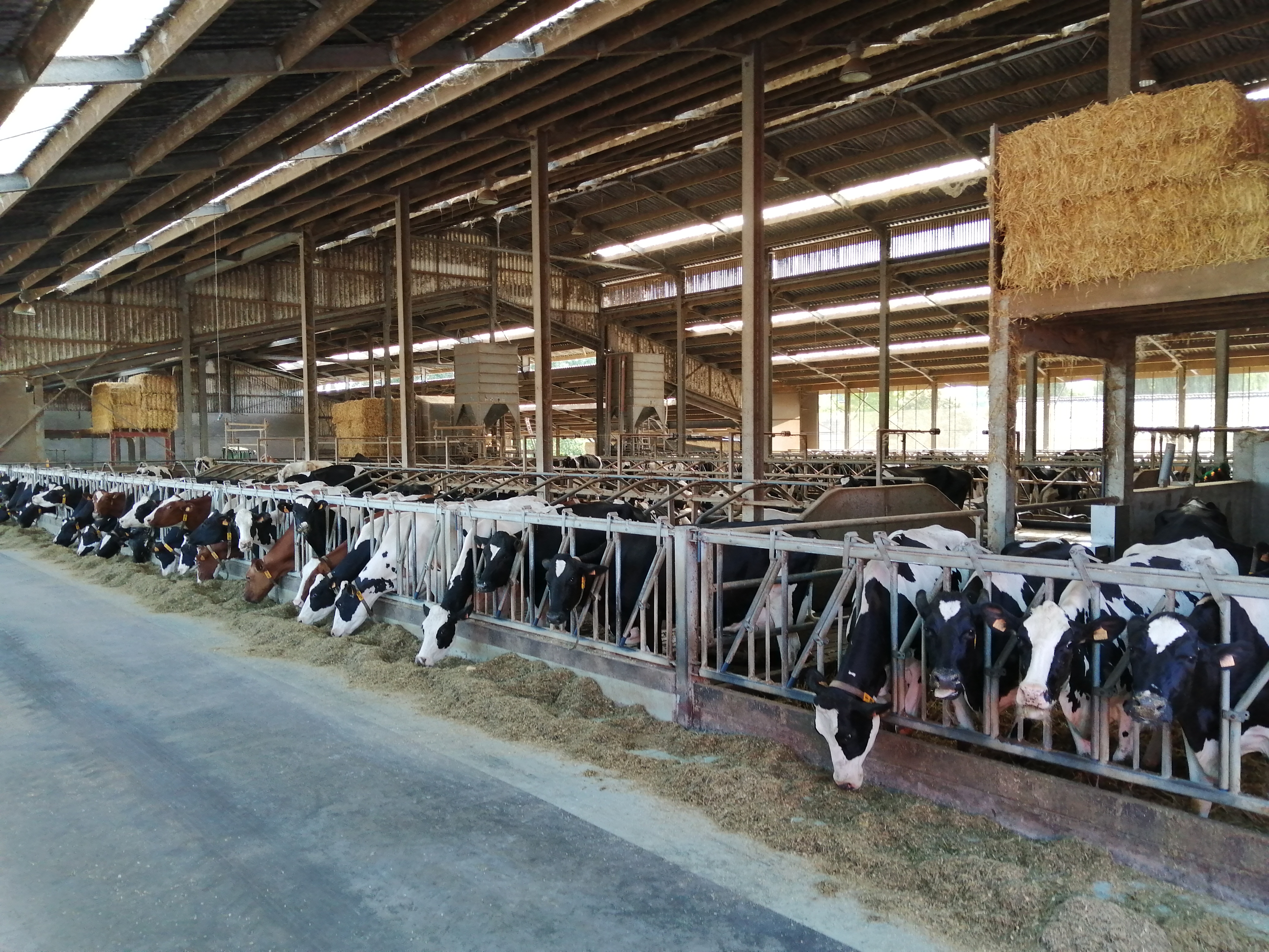 Onze melkveestal is hoog en open gebouwd, waardoor er veel natuurlijke verluchting is. ’s Nachts en in de voormiddag vallen de temperaturen dus wel redelijk mee. Na de middag begint het uiteraard wel heel warm en heet te worden, momenteel bijvoorbeeld 36 °C. Gelukkig waait er af en toe wat een windje. Gisteravond verschenen er wolken en zo begon het ook iets sneller af te koelen. Maar het blijft uiteraard veel te warm. We proberen de koeien deze hittedagen dus zo goed mogelijk te doorstaan.
