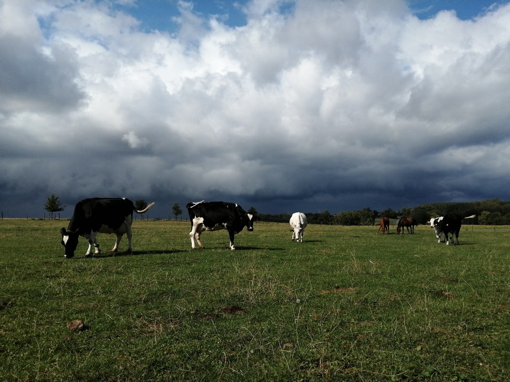 In Om bij weg te dromen toonde ik al enkele foto’s van dreigende wolken. Ook in dit bericht heb ik zo’n beauty voor jullie. Door die dreigende wolken en de daarbij horende buien konden we wel terug wat vers gras beginnen voederen. Het voordeel is nu vooral dat we geen pakken meer moeten maken maar al ons gras vers aan de koeien kunnen geven. Bepaalde weides worden deze tijd van het jaar ook niet meer gemaaid omdat het jongvee er nu op zit. Hun weides zijn bijna kort gegrazen. Het zal nu snel herfst zijn, al kan een nazomer nog altijd. Verder in dit bericht enkele foto’s.