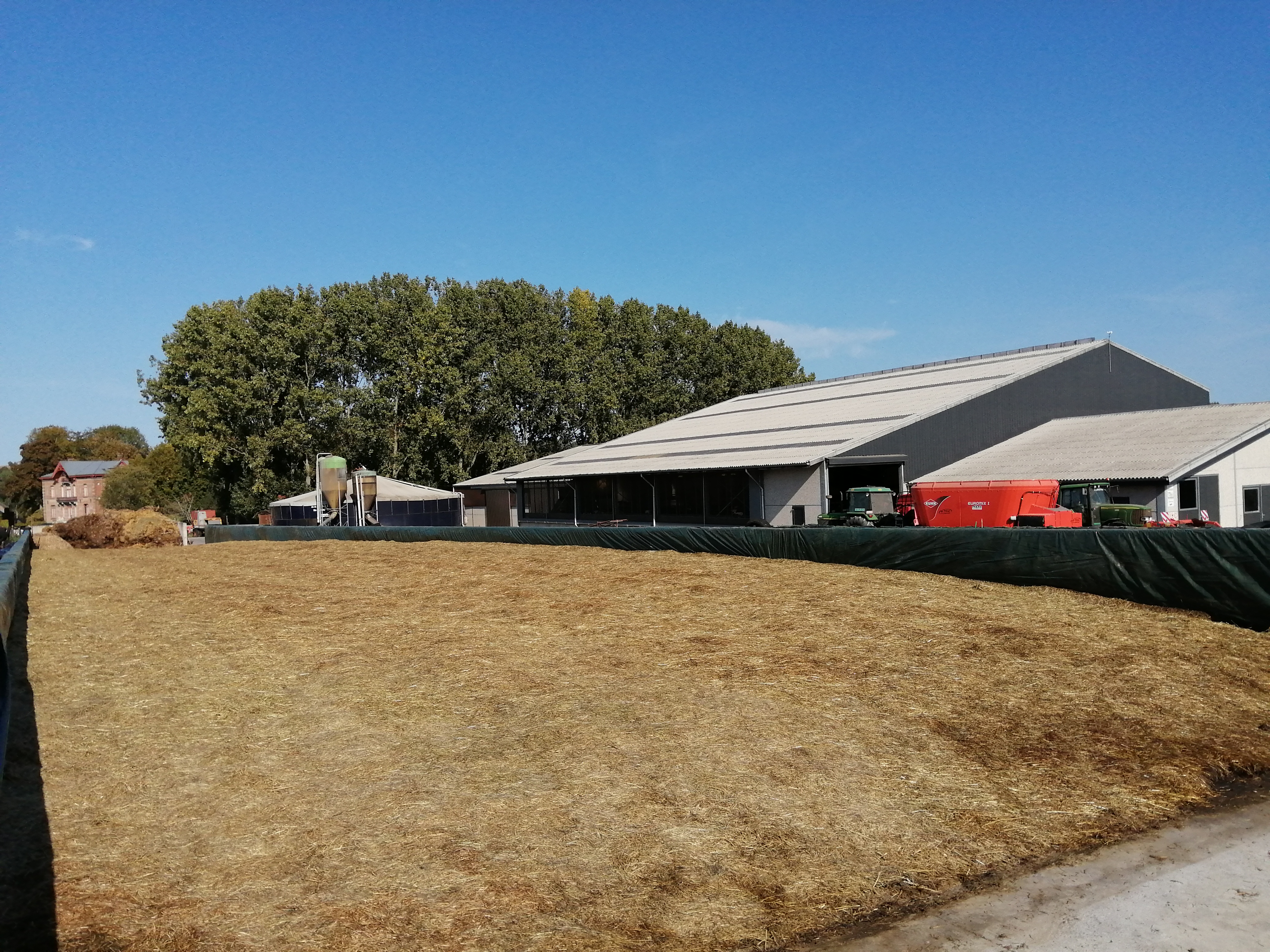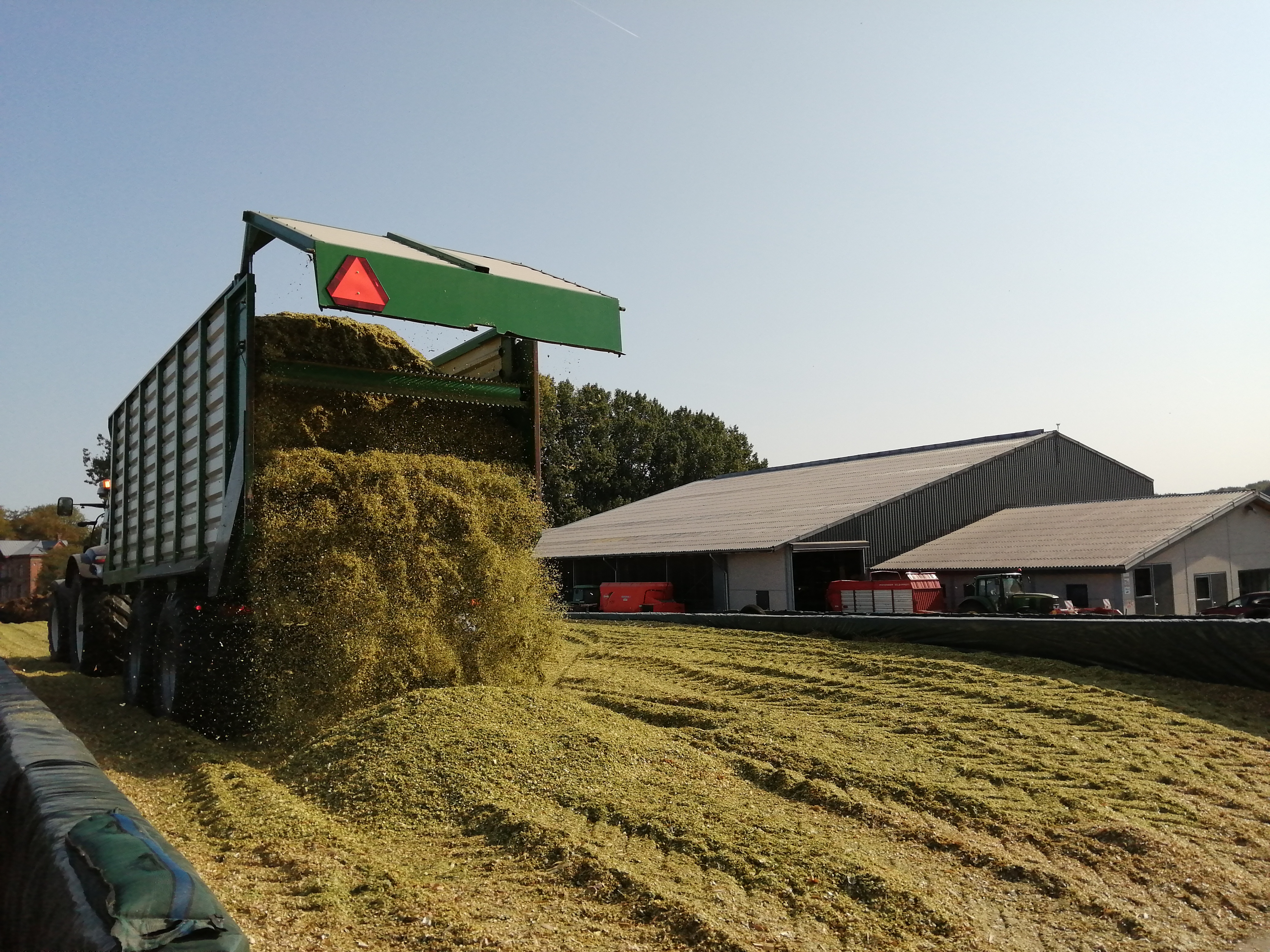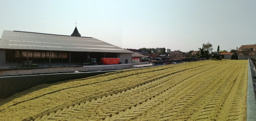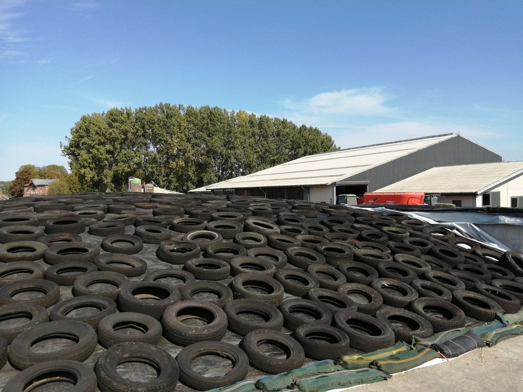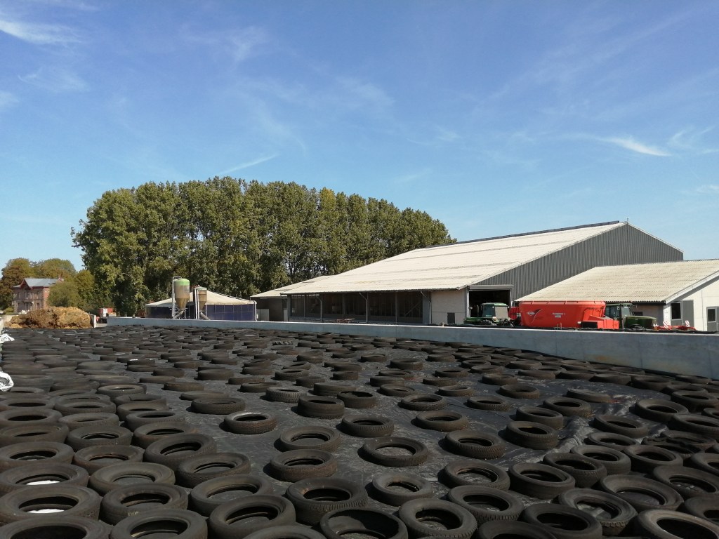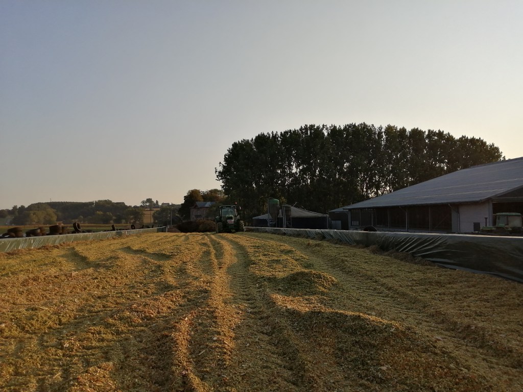 Vanmiddag rond half 12 lagen alle plastieken, netten, zandzakken en banden er terug op! Dit was onze eerste kuil, binnenkort volgt de tweede helft maïs. Hopelijk mag dat even vlot verlopen!