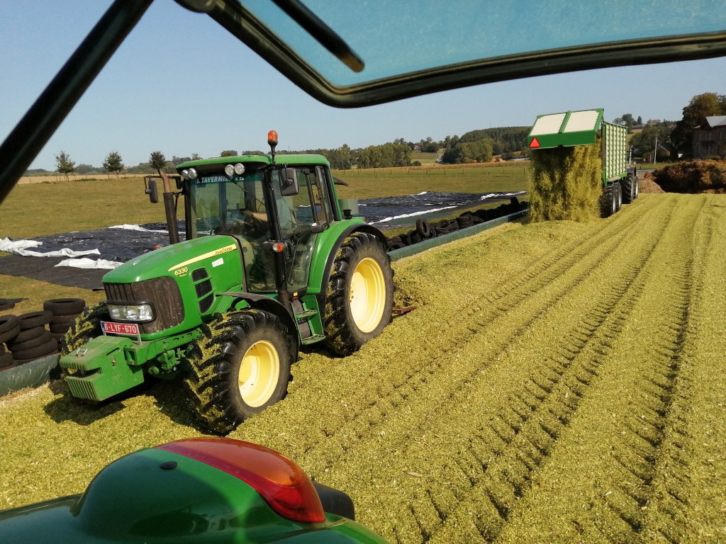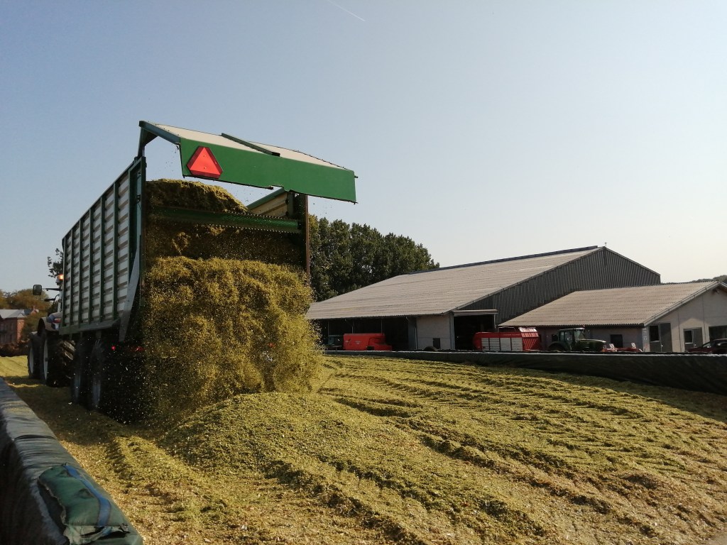 We hebben nu toch een nazomer, en wat voor één. Het had helemaal niet zo extreem gemoeten voor mij. De koeien zuchten nog van de vorige hitte en mogen nu al opnieuw blazen. Ook wij mogen puffen want het is ook weer die tijd van het jaar: maïs hakselen en inkuilen. Vooral de kuil ontdekken (zondagnamiddag) – want de maïs komt op het gras – en de kuil terug afdekken (dinsdagvoormiddag), is een heel karwei. Alles is wel goed verlopen, want we kregen hulp van de beste familie! Teamwork really makes the dream work, net als vorige jaren. Een mooi overzicht met foto’s en filmpjes gaf ik al vorig jaar in Maïs inkuilen op werelddierendag. Verder uiteraard meer beelden van dit jaar.