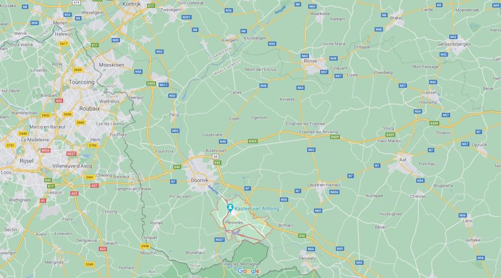 Eerst situeer ik Antoing even op de kaart van Google Maps. Antoing ligt op een 40 km van Schorisse (Maarkedal), net voorbij Doornik en tegen de grens met Frankrijk. In het dorp kan er ook gewandeld worden in het recreatiedomein Le Grand Large. Wij gingen dus voor het Circuit van het Pays Blanc. Ik toon de wandeling met foto’s waarop de voorgenoemde bezienswaardigheden te zien zijn. Wel niet allemaal topfoto’s, want met smartphone en vaak gewoon al wandelen.