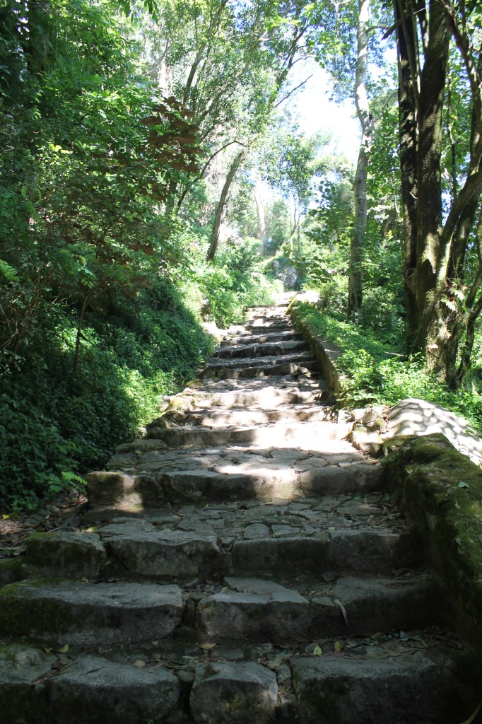 We stapten via straten tot aan de Igreja de Santa Maria (op het kaartje iets links van waar rechts “N375” staat). Iets verder dan deze kerk gingen we het park of het bos in op een wandelpad. Deze paden waren telkens goed begaanbaar. Meestal bestonden ze uit kasseien of stenen. Er waren wel veel trappen en bochten bij want het ging steeds omhoog! The only way is up!