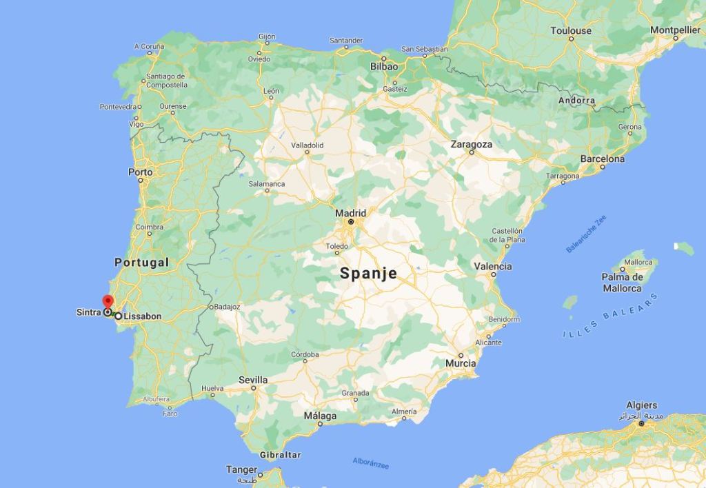 Sintra is een druk bezochte stad op zo’n 25 km ten westen van Lissabon. Zowel met de auto als met de trein is de stad op 40 minuten vanuit Lissabon te bereiken. Sintra is gekend omwille van zijn kastelen en paleizen, waarover ik verder meer vertel en toon. Hieronder krijgen jullie eerst kaarten met de situering.