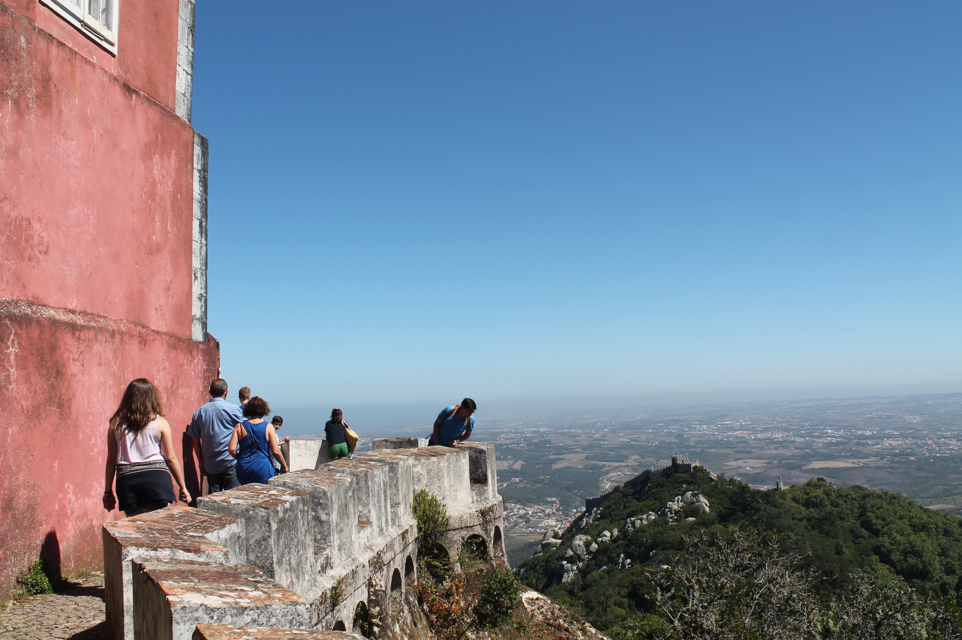 Het prachtige zicht op het paleis is eigenlijk nog best vanuit de lucht te zien. Vanuit een helikopter of met een drone, maar geen van beiden hadden we bij. Zoek het paleis eens op op Google en je gelooft me vast en zeker! Het uitzicht op de omgeving is fenomenaal! Vanaf het Palácio is het Castelo dos Mouros mooi te zien. Beide gebouwen staan sinds 1995 op de Werelderfgoedlijst van UNESCO.