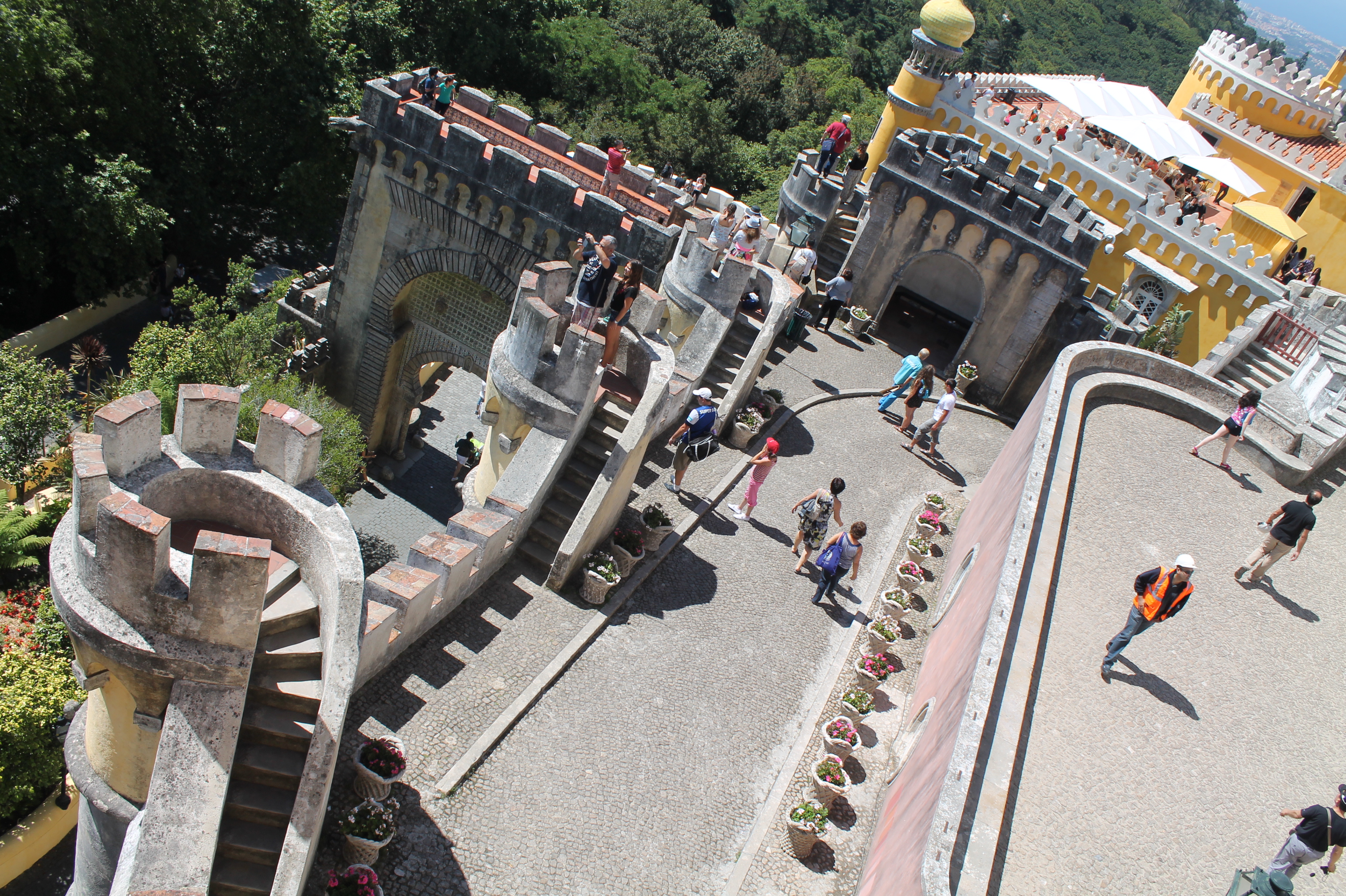 Het was een stevige wandeling maar we werden uiteindelijk beloond met het wondermooie, feeërieke Palácio da Pena. Dit is een voormalig zomerpaleis van de koninklijke familie van Portugal. Het werd gebouwd tussen 1842 en 1854 in verschillende romantische stijlen. Momenteel doet het dienst als museum. Binnenin valt dus ook heel wat te bewonderen, maar wij werden vooral overdonderd door het zicht en het uitzicht buiten.