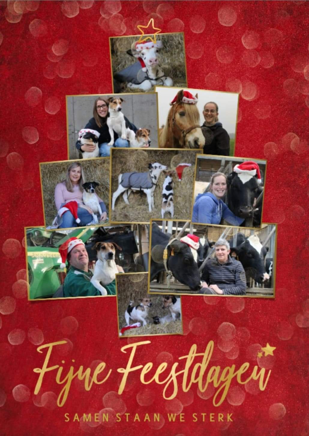 UPDATE Het kerstkaartje voor familie en dichte vrienden werd uiteindelijk eentje met niet alleen een foto van het kalfje, maar ook met een van elk van ons gezin. Het waren de laatste weken dat we allemaal thuis woonden, want zus Valerie had een huis gekocht en ging verhuizen. Ik vond het dus ideaal om te kiezen voor dit kaartje, met de bijhorende woorden “SAMEN STAAN WE STERK”. Ook al ideale woorden midden in de coronacrisis. Die heerste intussen sinds maart 2020: COVID-19 beheerst de wereld.