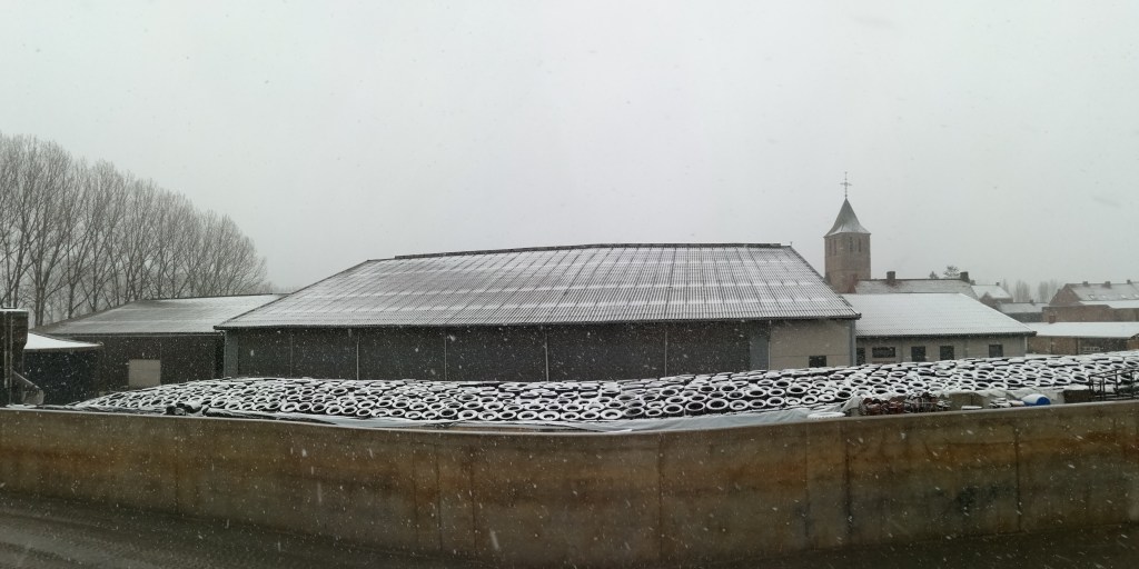 Met Kerst zaten we tevergeefs te wachten op een White Christmas. Maar nu heeft het gesneeuwd! Gisterenochtend begonnen de vlokjes te vallen, eerst smolten ze nog weg, maar ze bleven uit de lucht vallen… Er werd een mooi winters landschap gevormd! Exact vier jaar geleden was het ook van dat trouwens. Ik maakte toen kort een filmpje: Onze boerderij in de sneeuw. Ook nu heb ik enkele beelden voor jullie. Het blijft prachtig, zelfs al is het kl*te om in te werken!
