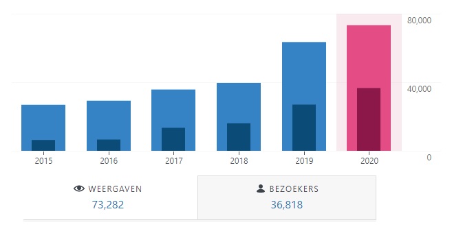 Een bezichtiging is één klik: één bericht of pagina. Een bezoeker is één persoon. Bij de cijfers van 2020 schrijf ik tussen haakjes het verschil met het jaar ervoor.
