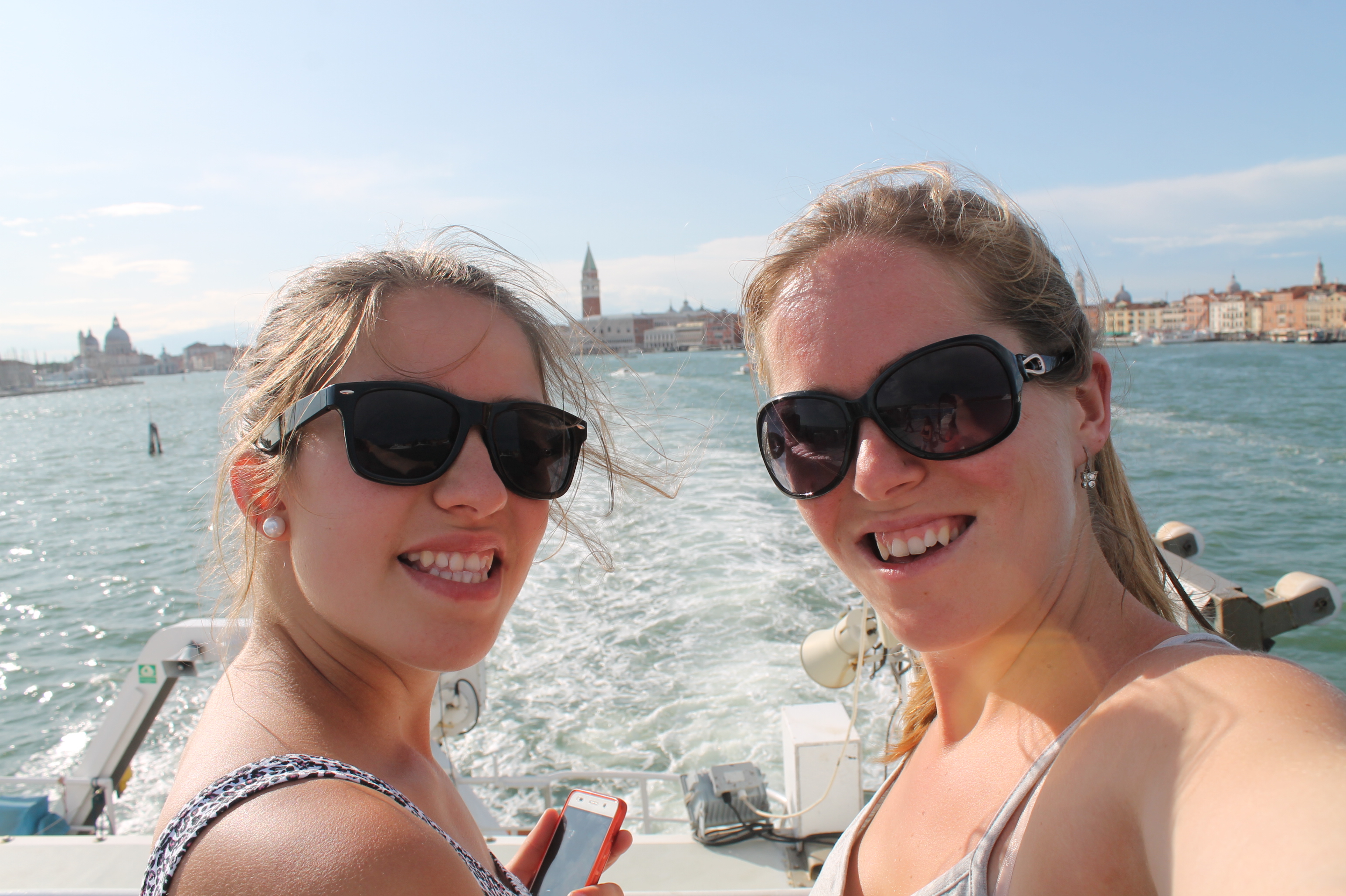 Ik bezocht Venetië samen met m’n zus Stefanie, een daguitstap vanuit Pula, zoals ik al zei in de intro van dit bericht. Hierboven rechts zie je nog een foto van ons, vanaf de veerboot bij het verlaten van Venezia. Je ziet het, happy faces met een big smile! Heel blij dit avontuur te mogen beleefd hebben!