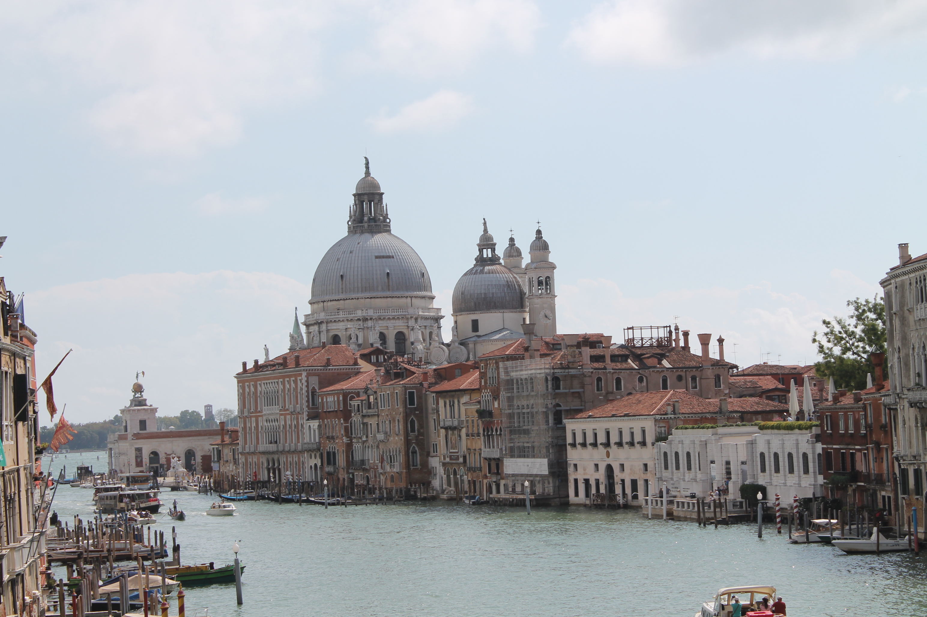 Het zicht vanop de brug is eigenlijk nog veel meer de moeite dan de brug op zich. Vanop de brug kijk je oostwaarts namelijk uit op het einde of het begin van het Canal Grande. Je ziet ook de Basilica di Santa Maria della Salute, en daarmee komen we aan het volgende puntje.