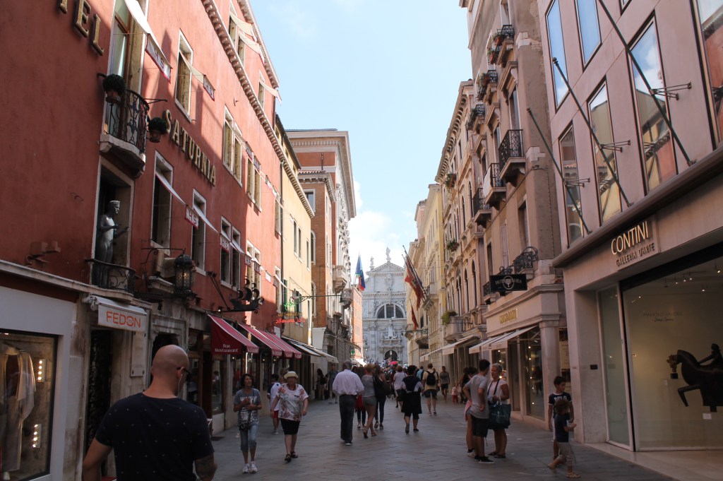Er zijn enorm veel kerken in Venetië. In het Italiaans is een kerk een Chiesa. Sommigen lijken erg goed op elkaar, andere zien er weer helemaal anders uit. Ik heb twee foto’s hierboven van mooie kerken, de linkse de Chiesa di San Moisè, de rechtse de Chiesa di San Rocco. Ga er niet naar op zoek maar laat je tijdens het rondwandelen in Venetië gewoon verrassen door de vele kerkjes!