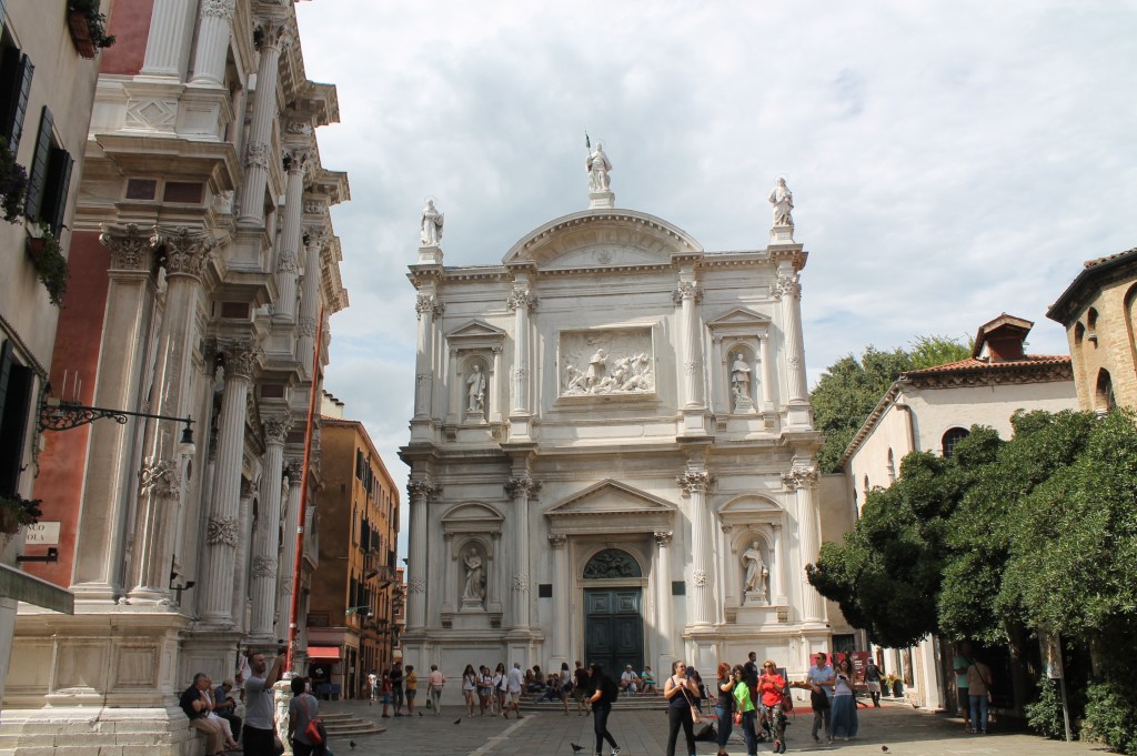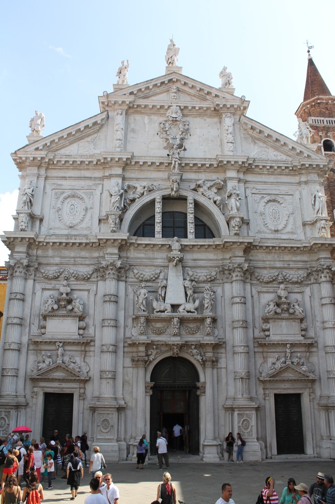 Venetië is vooral gekend om zijn vele kanalen, zijn vele brugjes en zijn smalle straatjes. Uiteraard ook om zijn bekendste gebouwen. De grote basilieken en paleizen stralen enorm veel pracht en praal uit. Maar bij het rondslenteren in de stad kom je plots vanuit een smal (of breder) straatje een kerk tegen, wat verder nog een, en daar nog een…