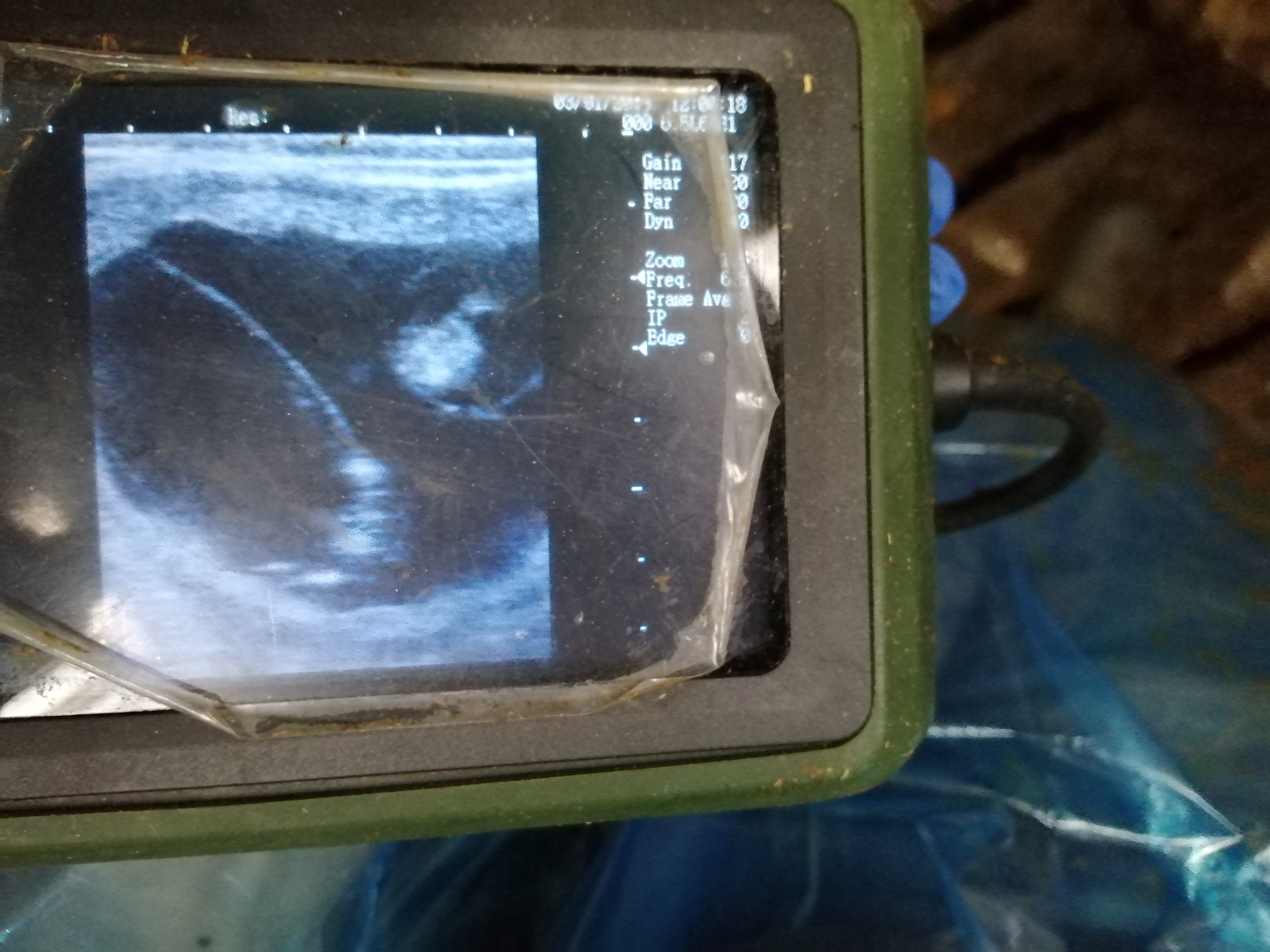 Maandag was het terug de eerste maandag van de maand en dus was veearts Bart van de partij voor vruchtbaarheidsbegeleiding en drachtcontrole. Bij het controleren op dracht kwamen we bij koe Britney een opvallend beeld tegen. De scan toonde twee vruchtjes! Het gaat hier zo goed als zeker om een tweeling!