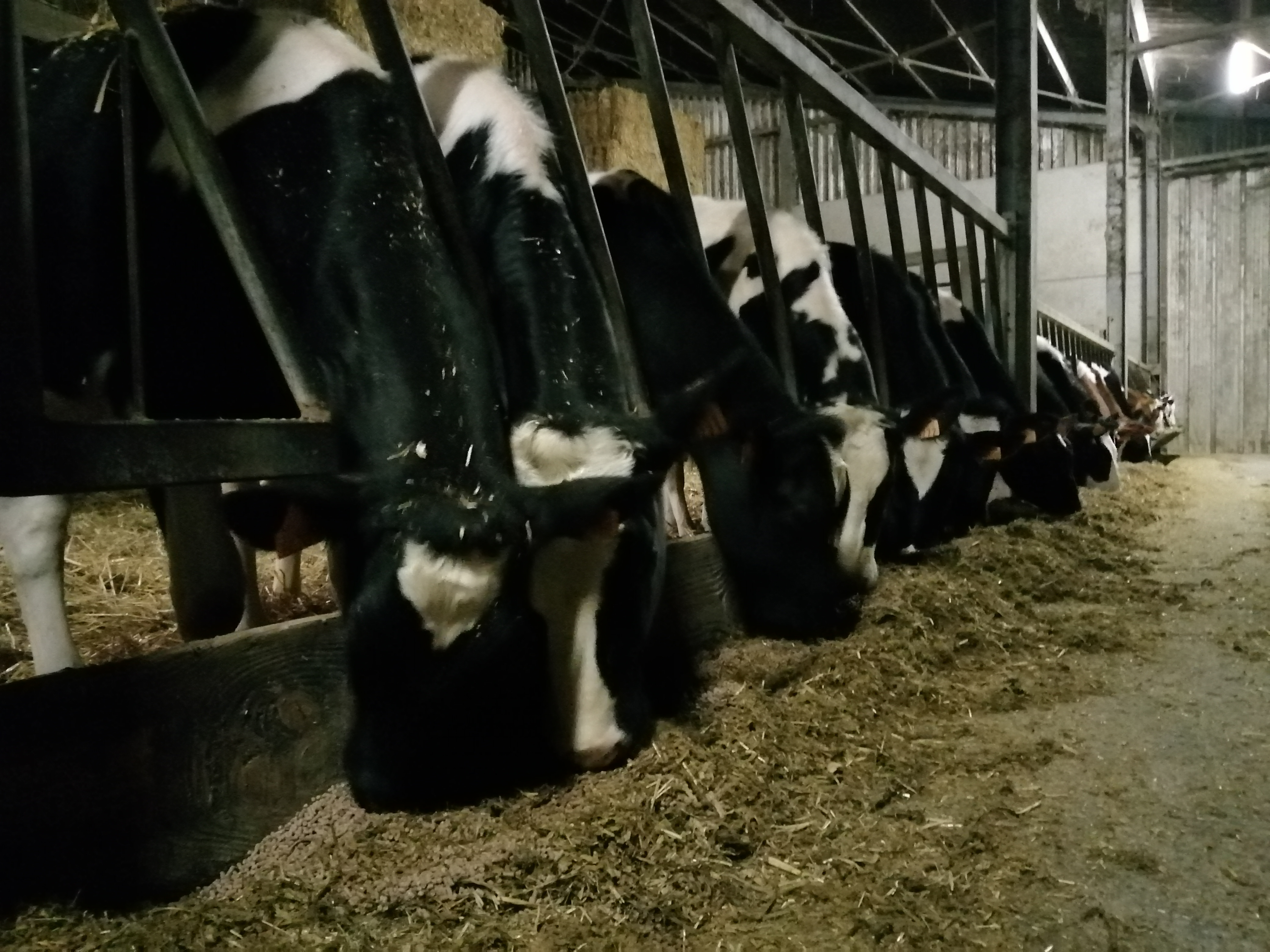 Om af te sluiten heb ik nog een mooie foto van hoe onze dag ook elke dag eindigt… Het jongvee in de stroboxen krijgt z’n korreltjes… Toch een geweldig beeld! Een zalig gevoel ook, als alle koeien gemolken zijn, alle kalfjes melk hebben gehad en alle dieren hun eten bijgeschoven werd. Dit jongvee dan nog hun korrels… en dan gaat het licht uit! Tot morgen!